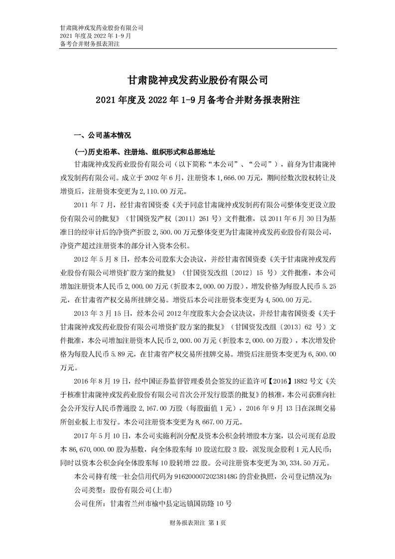 甘肅隴神戎發(fā)藥業(yè)股份有限公司備考財務(wù)報表審閱報告-大華核字[2022]0014487號