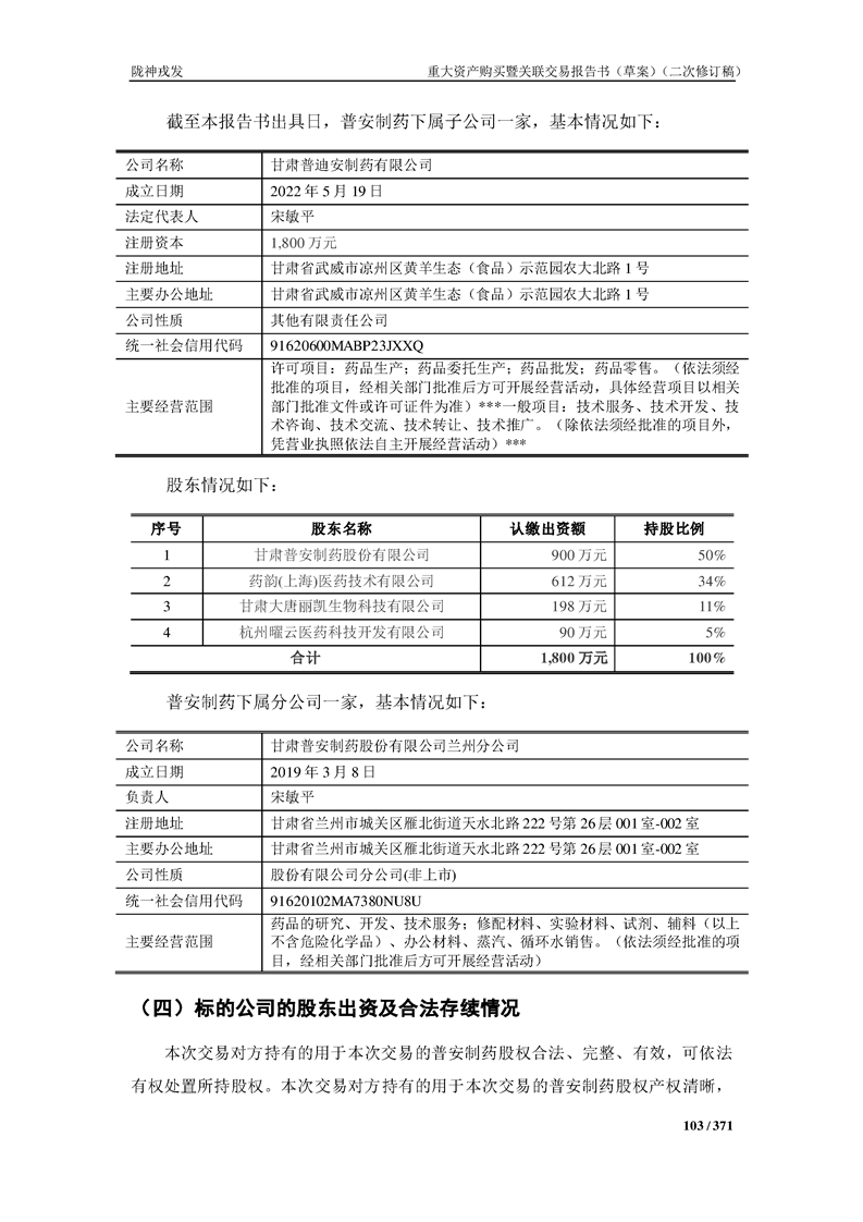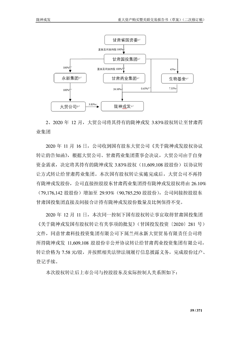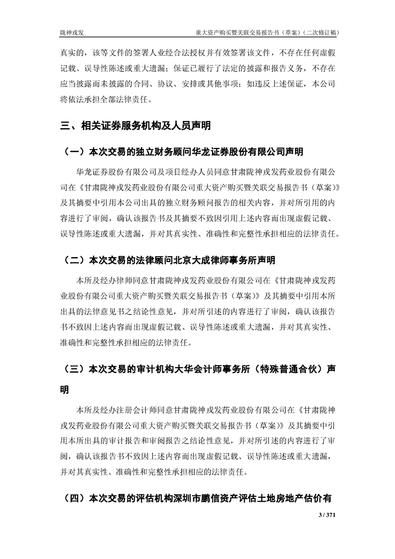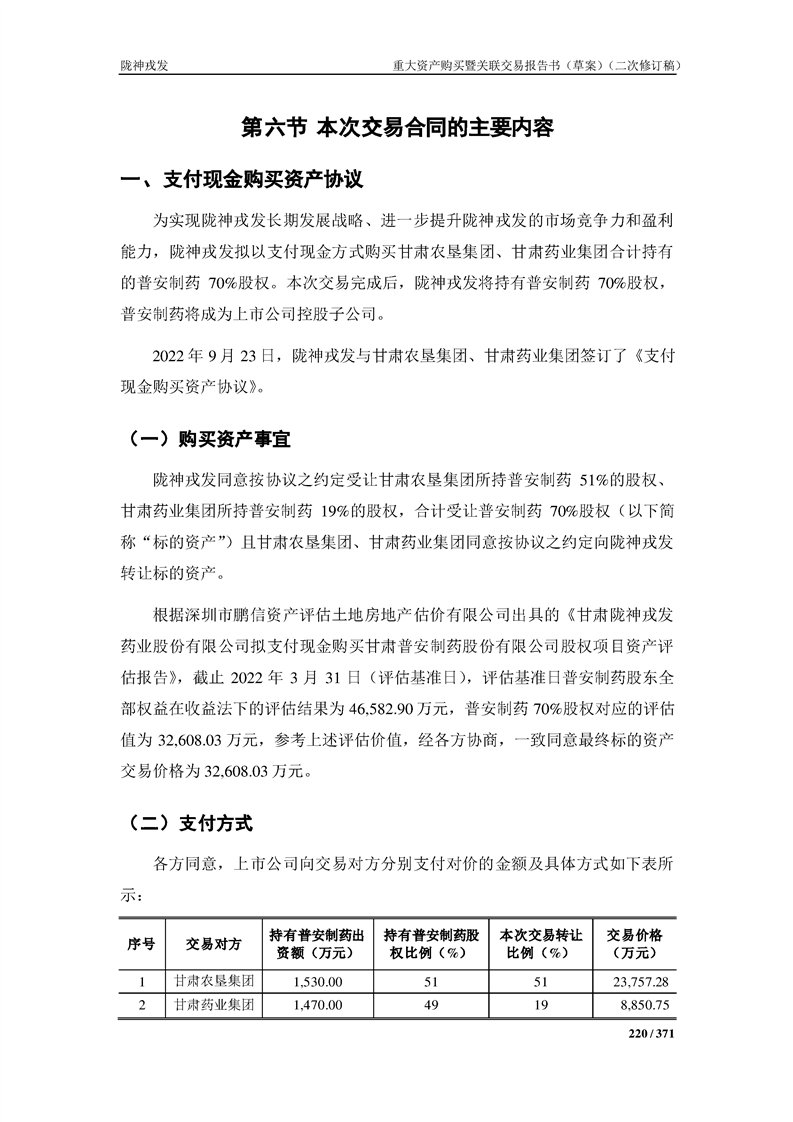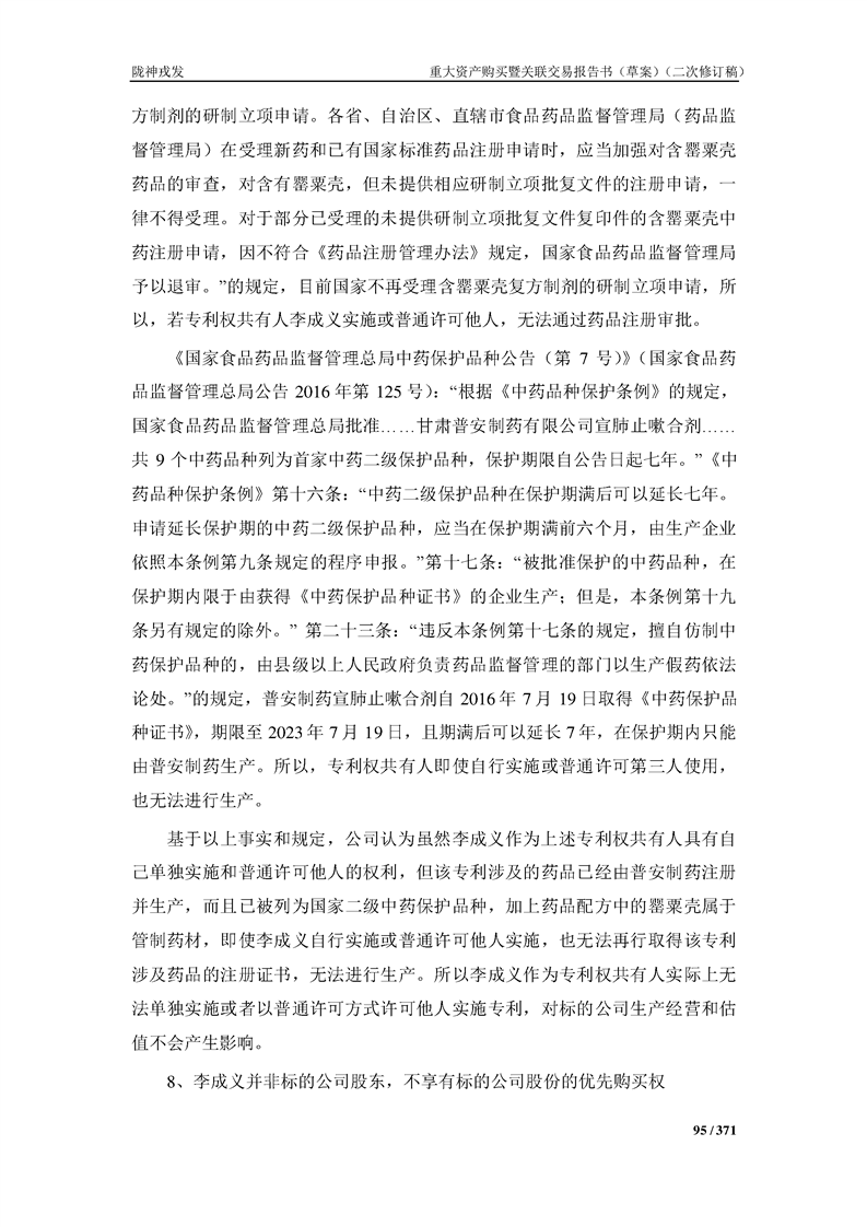 甘肅隴神戎發(fā)藥業(yè)股份有限公司重大資產(chǎn)購買暨關(guān)聯(lián)交易報告書(草案)摘要(二次修訂稿)