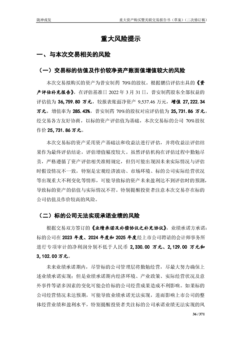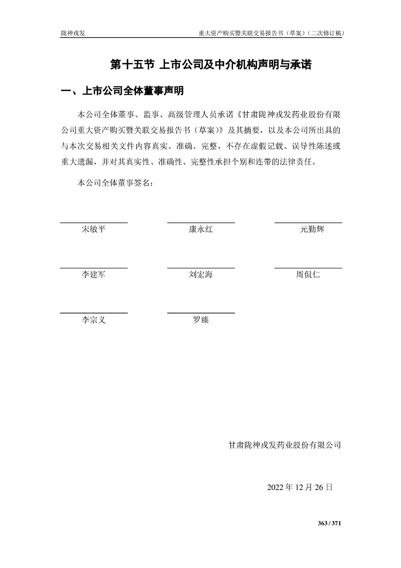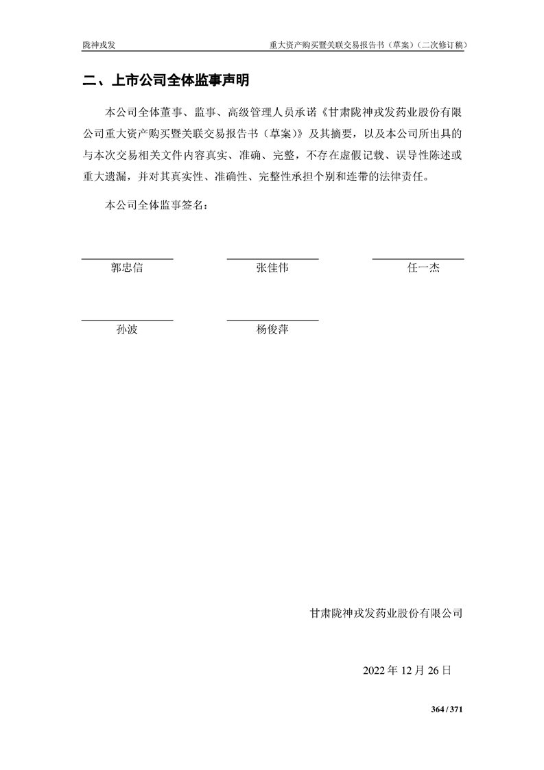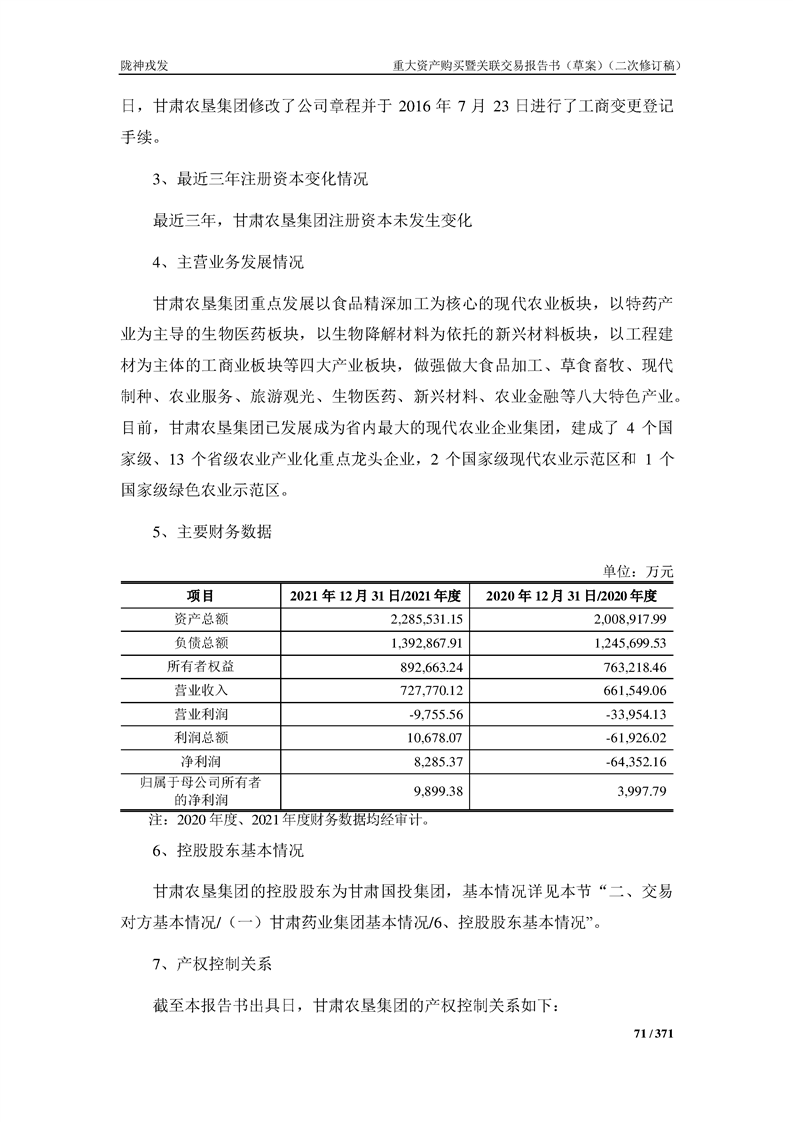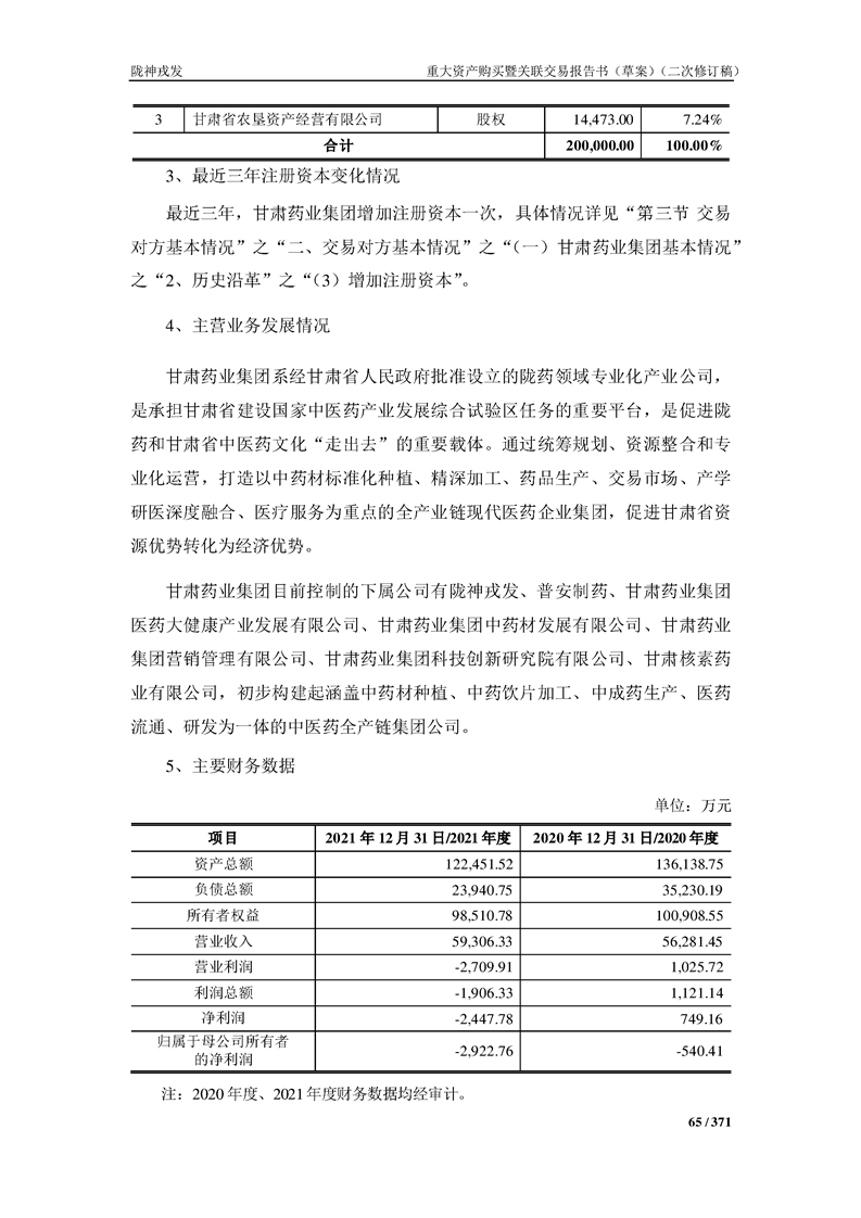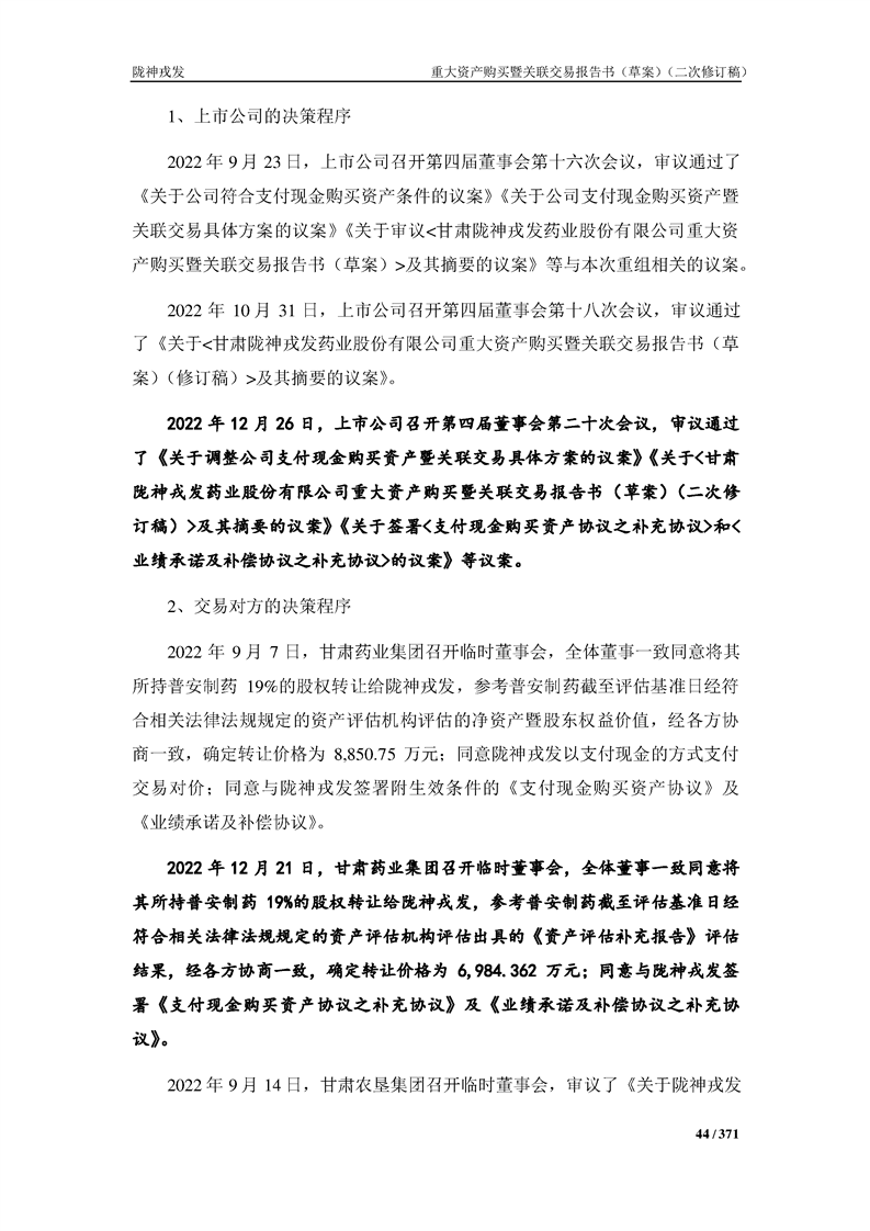 甘肅隴神戎發(fā)藥業(yè)股份有限公司重大資產(chǎn)購買暨關(guān)聯(lián)交易報告書(草案)摘要(二次修訂稿)