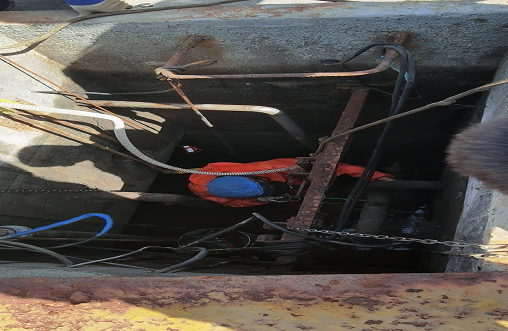 清理完污水池后,設(shè)備工程部對(duì)部分設(shè)備設(shè)施進(jìn)行維修更換,面對(duì)刺鼻的氣味和空間狹小、天氣熱的困難,設(shè)備工程部從領(lǐng)導(dǎo)干部到普通職工,大家爭(zhēng)先表達(dá)出下井作業(yè)的強(qiáng)烈意愿。但考慮到安全因素,還是決定由受過(guò)安全培訓(xùn)且更有經(jīng)驗(yàn)的人員來(lái)實(shí)施。黨員干部王洋身先士卒,帶領(lǐng)袁國(guó)田、陳振剛交替下井作業(yè)。炎炎烈日下,剩下的人也加入到協(xié)助下井維修的隊(duì)伍當(dāng)中,有幫著遞工具的,有幫著遞水的,有幫著下井人員穿防護(hù)服的,大家齊心協(xié)力,互幫互助,攻堅(jiān)克難,圓滿順利的完成了這次頗具挑戰(zhàn)的維修任務(wù)。