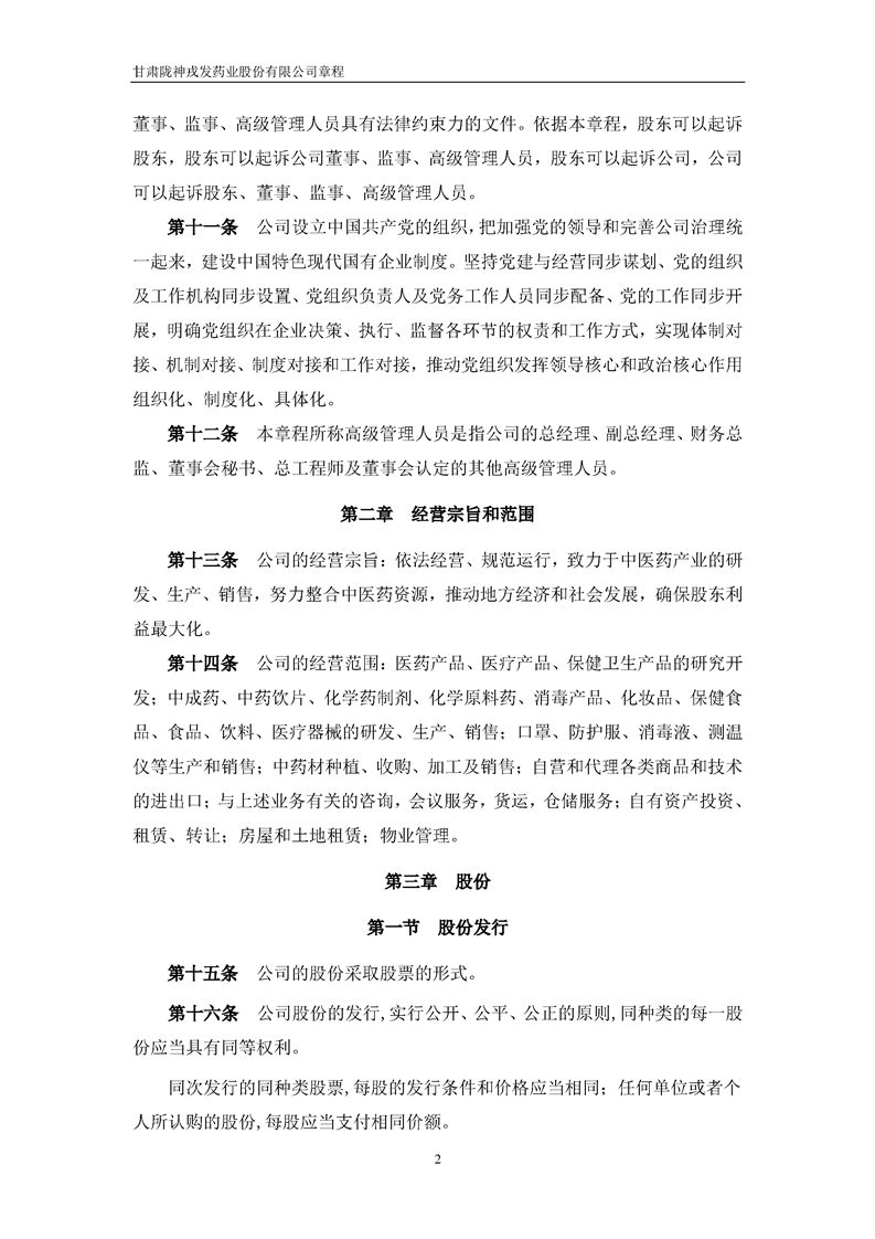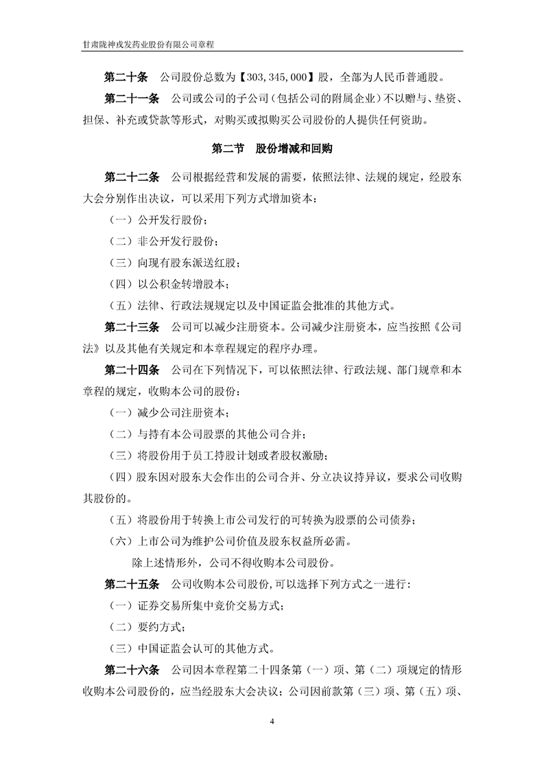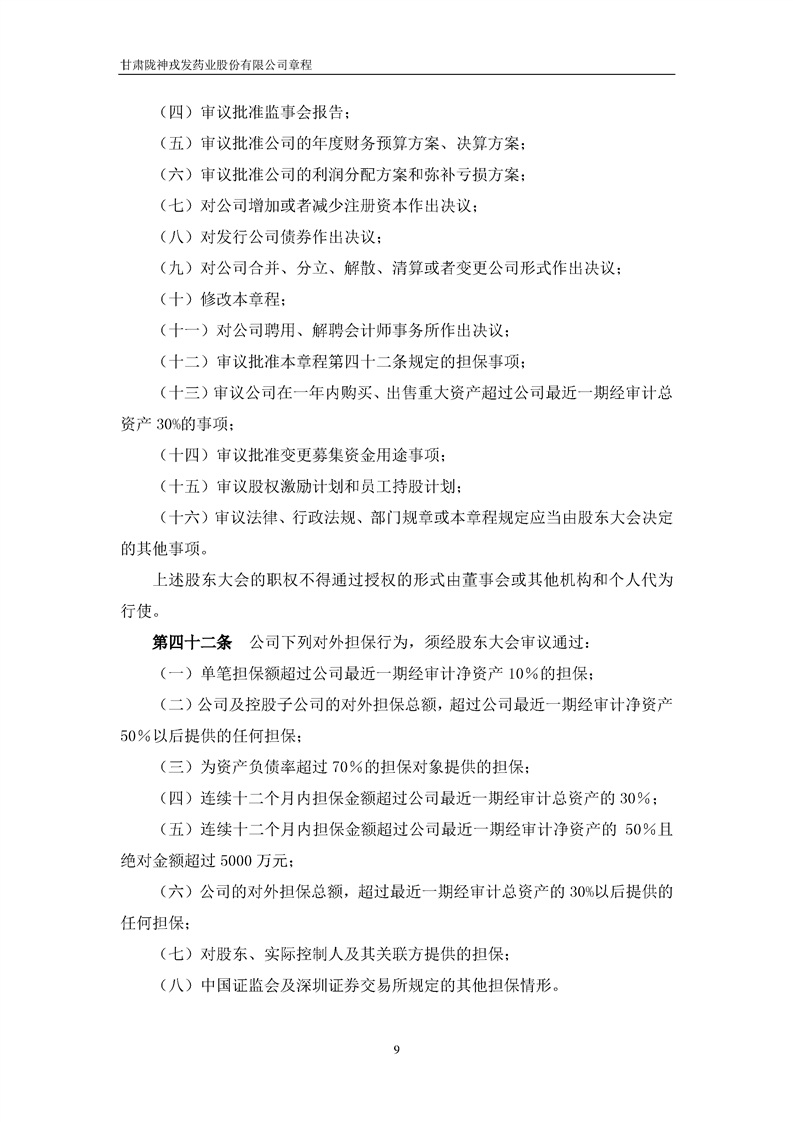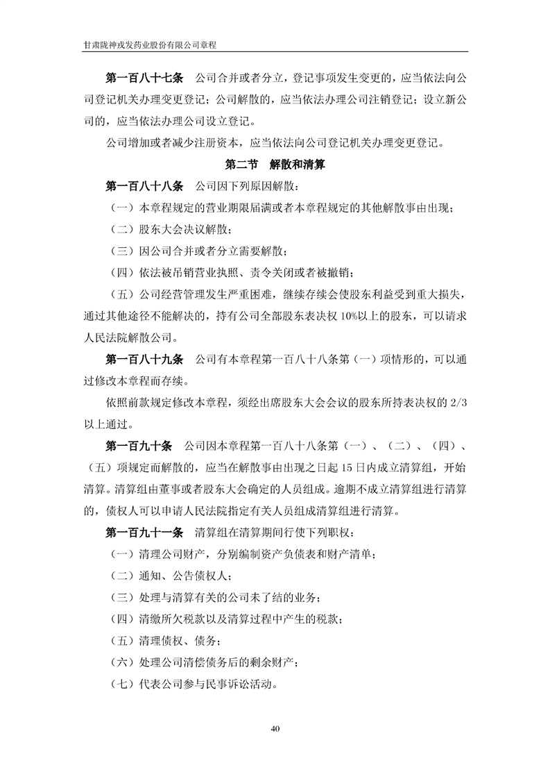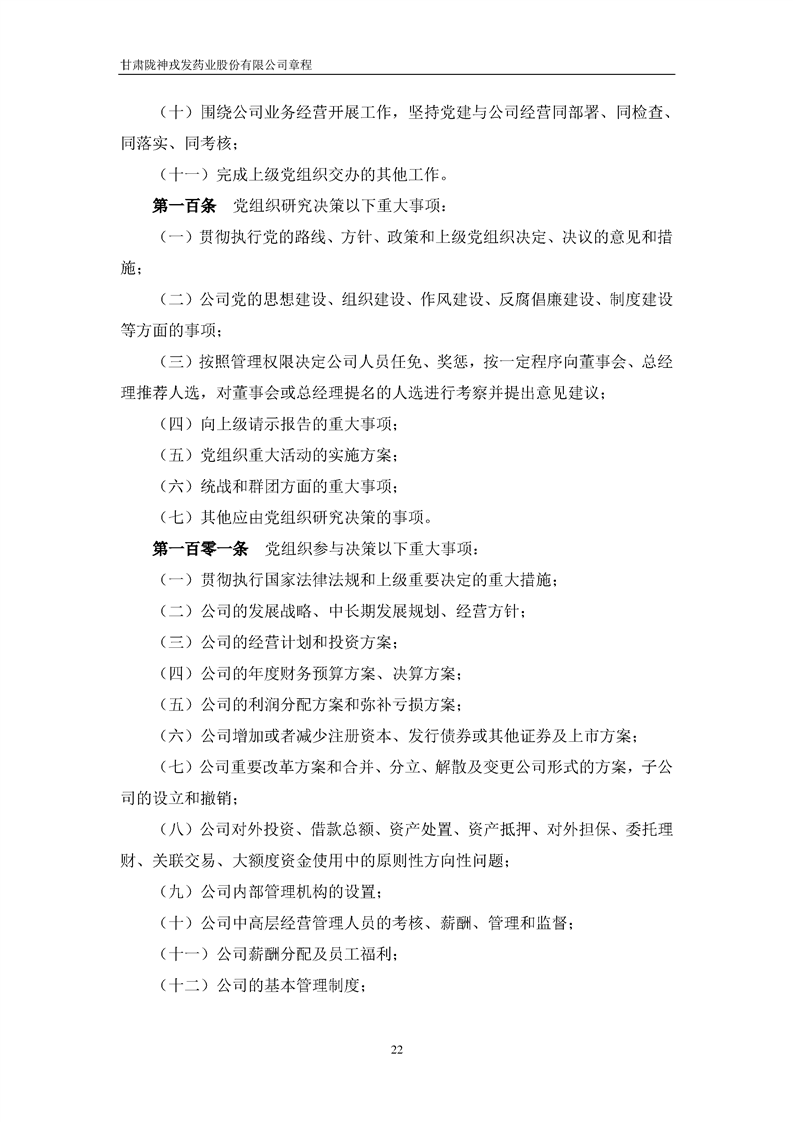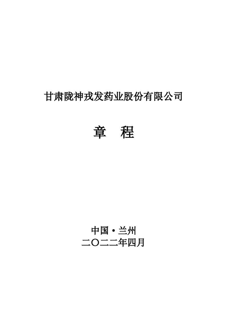 甘肅隴神戎發(fā)藥業(yè)股份有限公司章程(2022年4月)