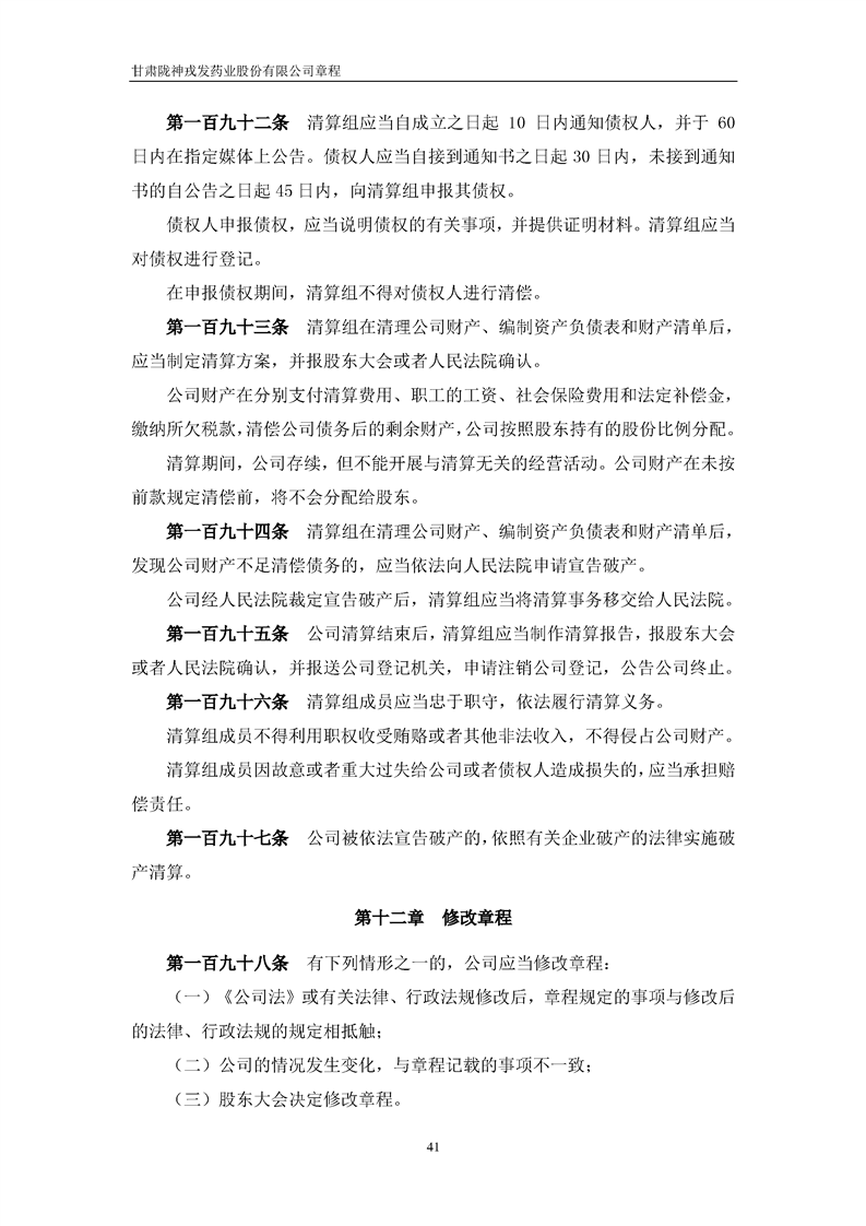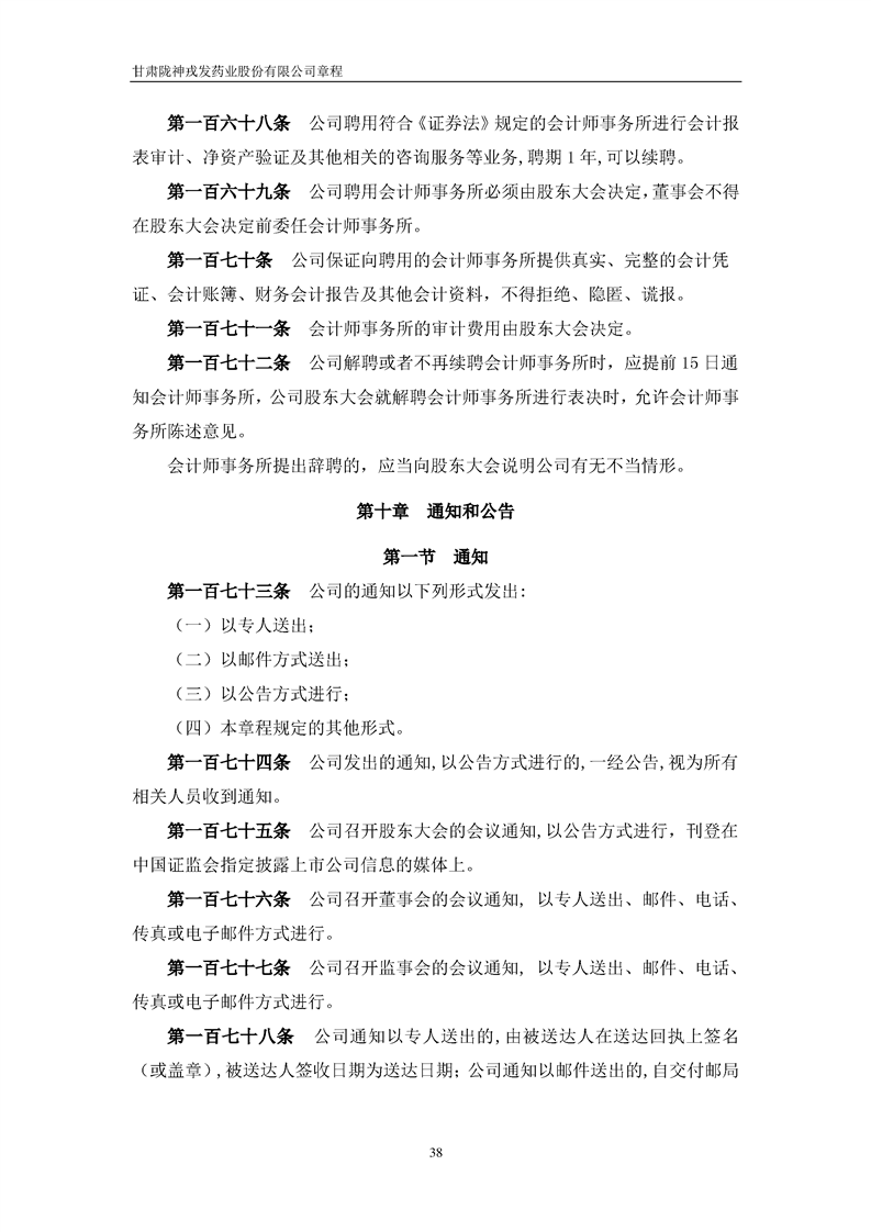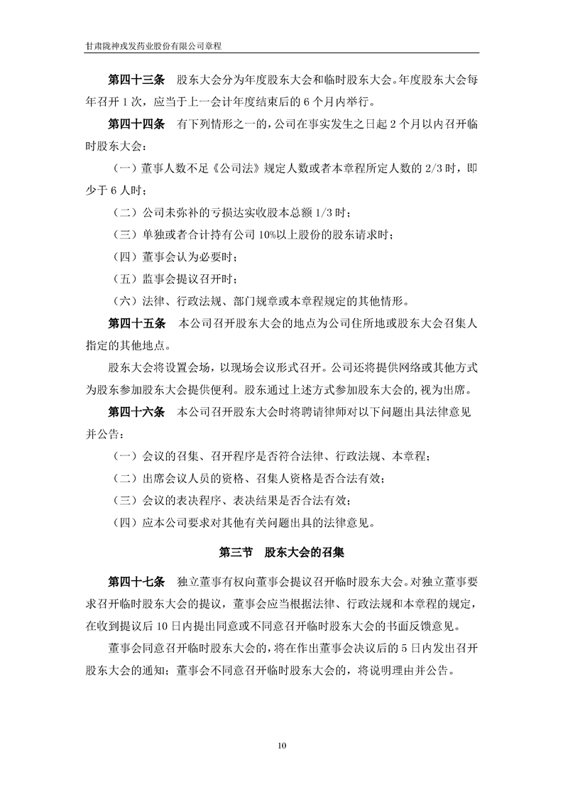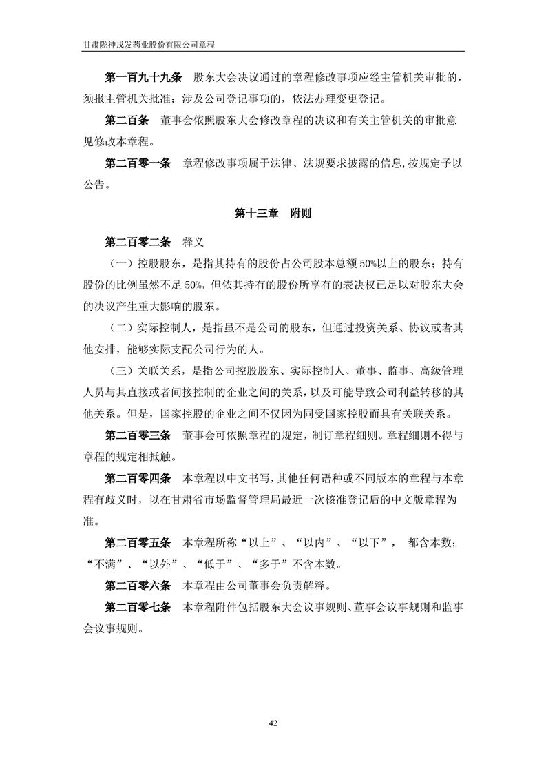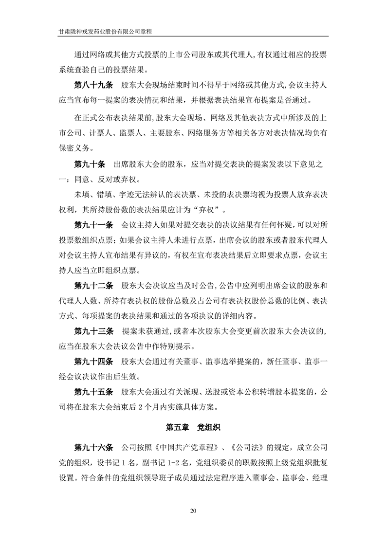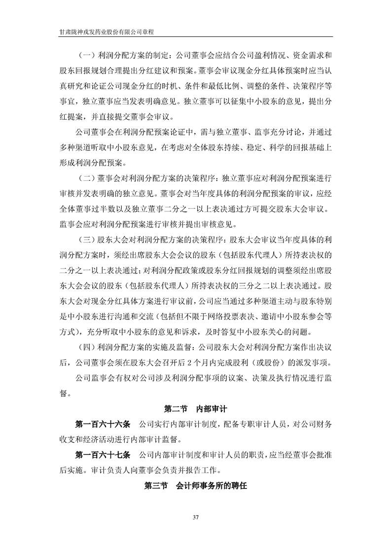 甘肅隴神戎發(fā)藥業(yè)股份有限公司章程(2022年4月)