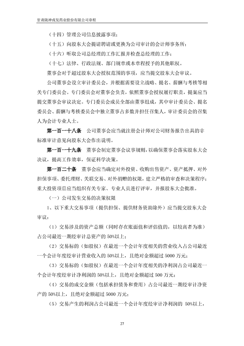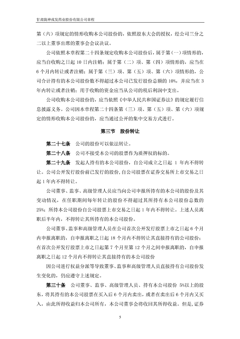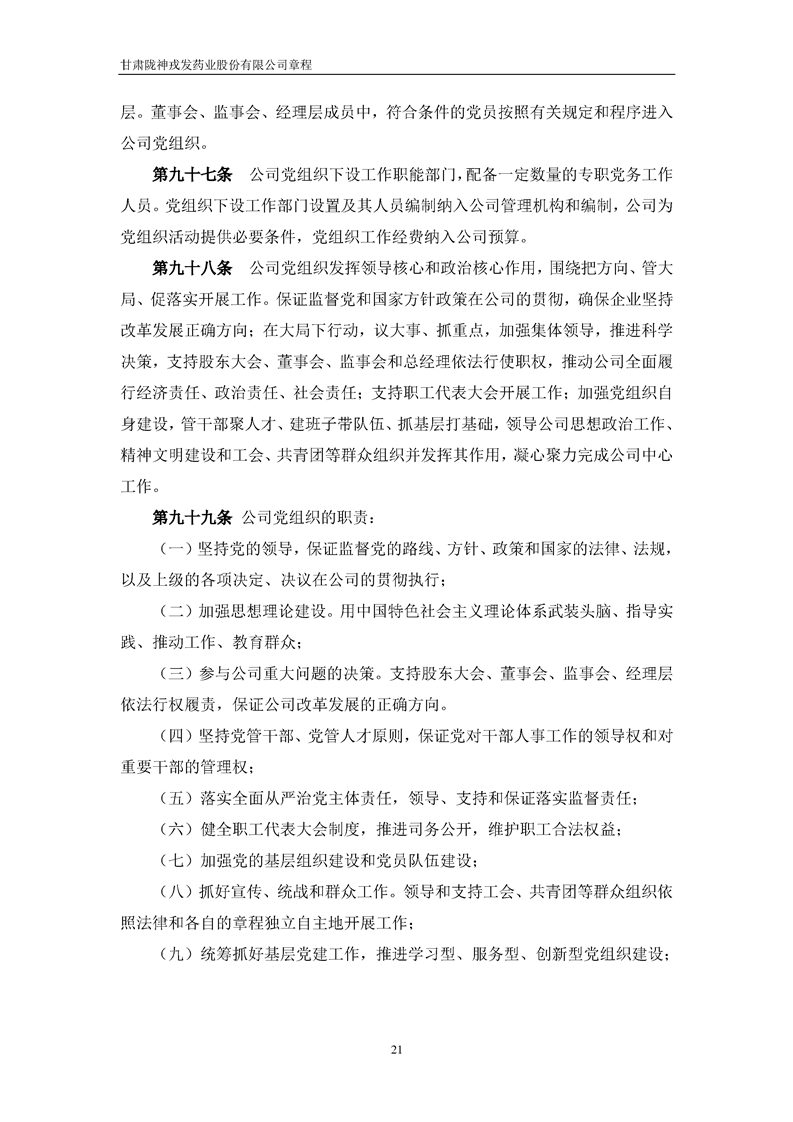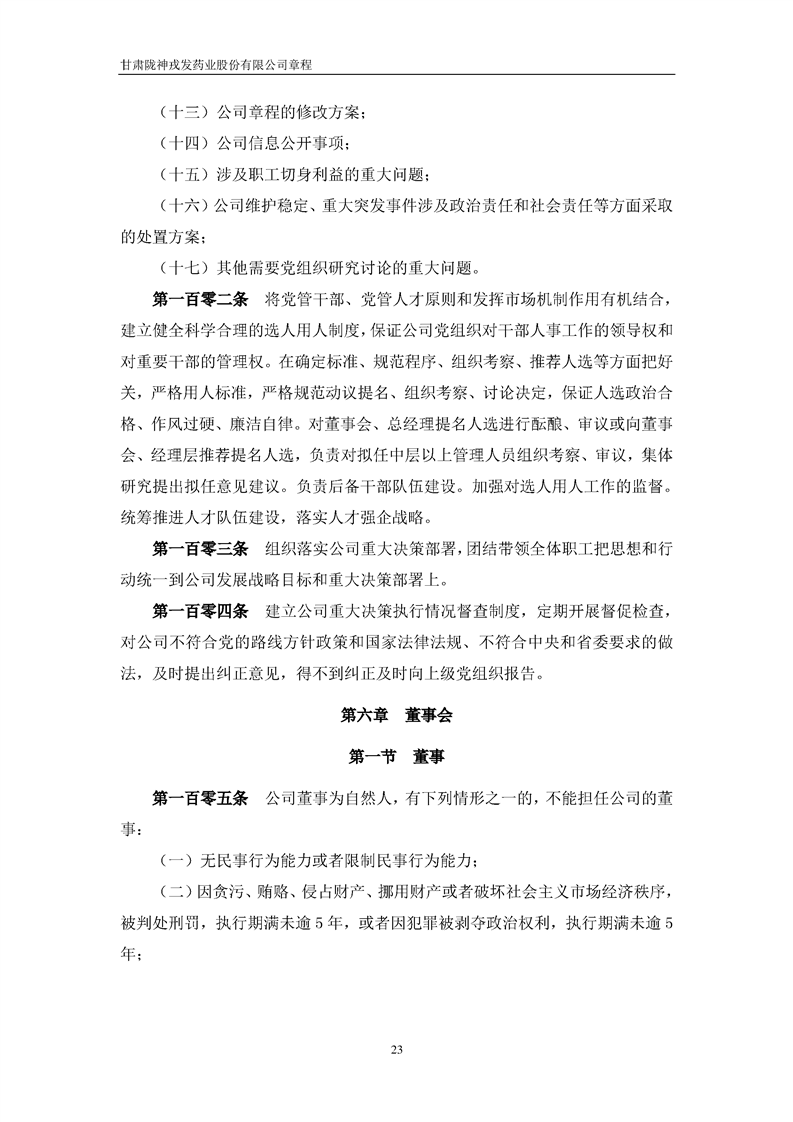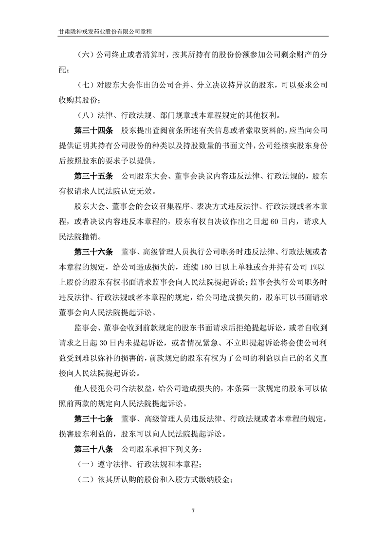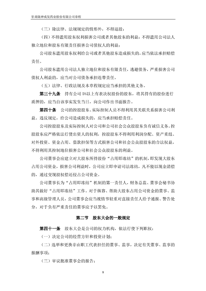 甘肅隴神戎發(fā)藥業(yè)股份有限公司章程(2022年4月)