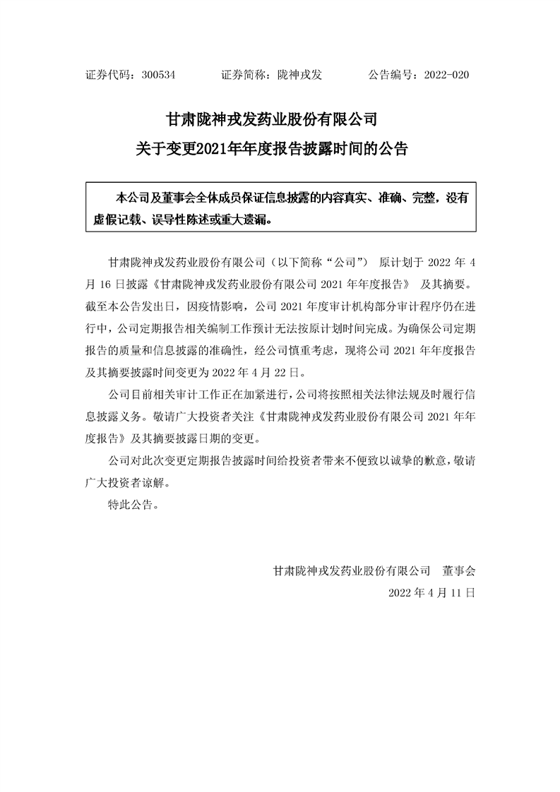關(guān)于變更2021年年度報(bào)告披露時(shí)間的公告