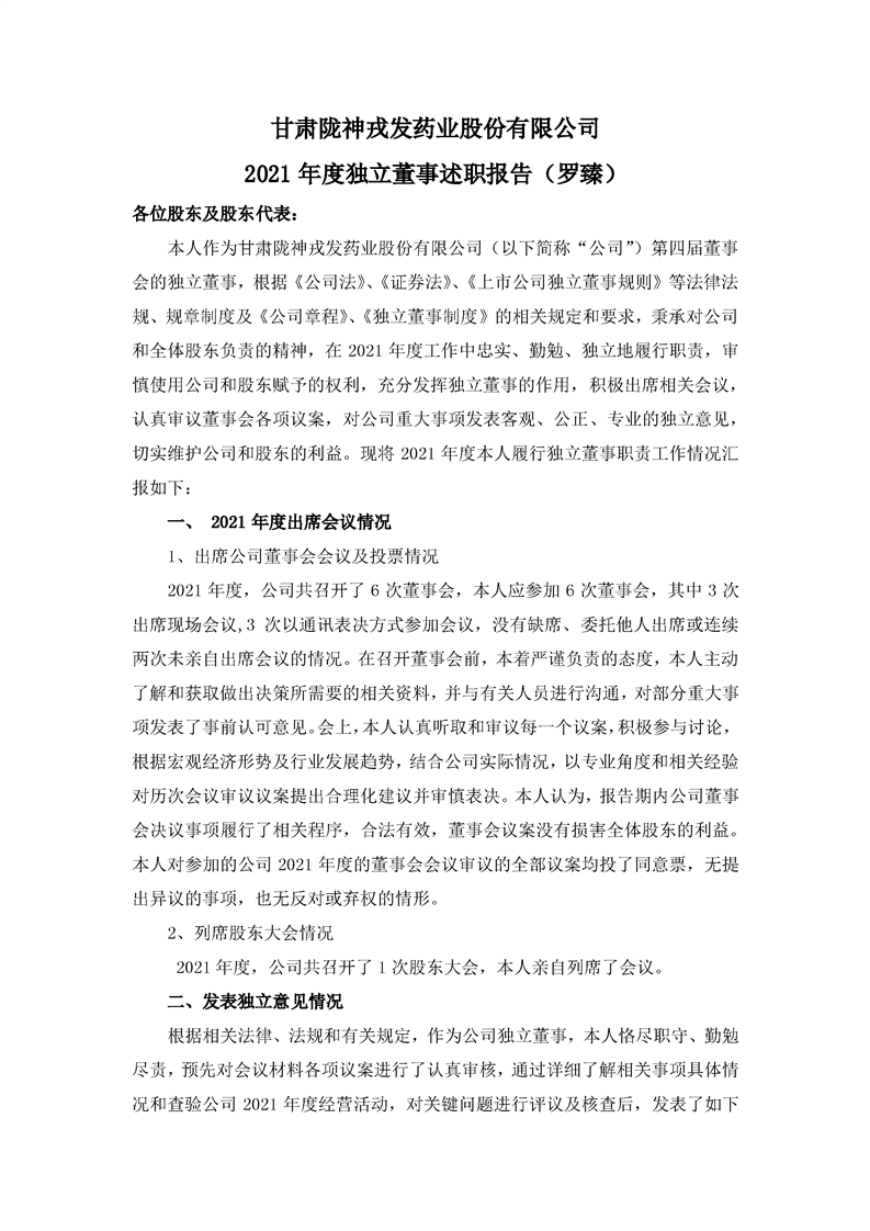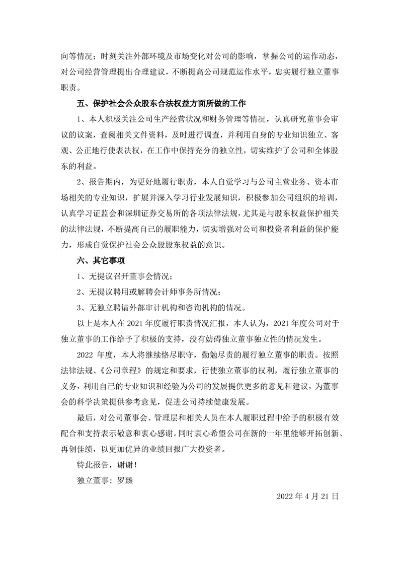 2021年獨(dú)立董事述職報(bào)告(羅臻)