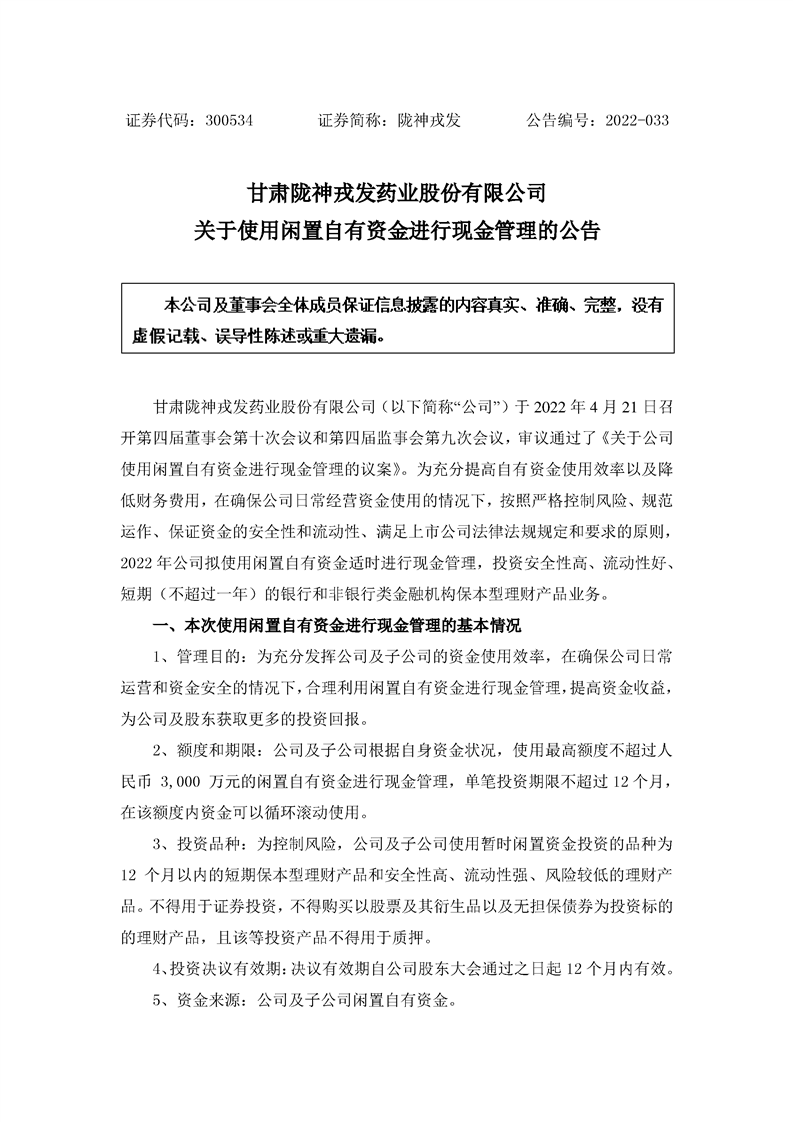 關(guān)于使用閑置自有資金進(jìn)行現(xiàn)金管理的公告
