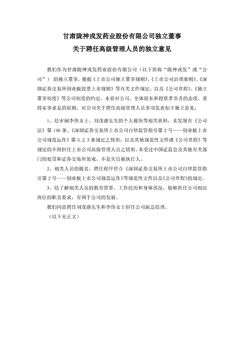 獨(dú)立董事關(guān)于聘任高級(jí)管理人員的獨(dú)立意見