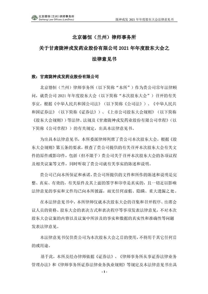 隴神戎發(fā)2021年年度股東大會(huì)法律意見書