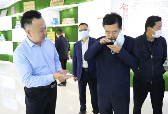王奮彥一行在甘肅藥業(yè)集團(tuán)黨委書記、董事長魏陽的陪同下,饒有興致地參觀了公司制劑大樓的產(chǎn)品陳列廳,詳細(xì)了解了甘肅藥業(yè)集團(tuán)的組建背景、產(chǎn)業(yè)構(gòu)成,以及隴神戎發(fā)的發(fā)展歷史、科技研發(fā)、主導(dǎo)產(chǎn)品及市場(chǎng)銷售情況。魏陽董事長就隴神戎發(fā)主打產(chǎn)品元胡止痛滴丸的市場(chǎng)規(guī)模和劑型特點(diǎn)向調(diào)研組進(jìn)行了詳細(xì)介紹,并結(jié)合公司近期推出的元胡止痛滴丸婦科“痛經(jīng)”單病種全新包裝,以及以甘肅道地藥材黃芪和當(dāng)歸為主要原料研制而成的黃芪當(dāng)歸膠囊將逐步拓寬線上銷售等一系列創(chuàng)新舉措,與調(diào)研組進(jìn)行了深入交流。