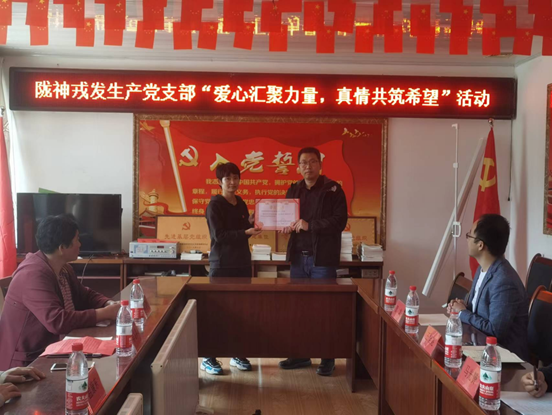 此次支部共建愛心捐款活動(dòng)也是共建雙方履行各自職責(zé),切實(shí)幫助基層群眾解決實(shí)際問題,關(guān)愛弱勢群體,增強(qiáng)黨群關(guān)系的一項(xiàng)重要舉措。下一步隴神戎發(fā)生產(chǎn)第一黨支部將繼續(xù)探索支部共建常態(tài)化、長效化機(jī)制,持續(xù)履行醫(yī)藥企業(yè)黨組織應(yīng)有的使命擔(dān)當(dāng),努力踐行國有企業(yè)黨組織的社會(huì)責(zé)任。