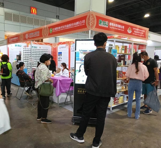 此次展會,隴神戎發(fā)受邀與(泰國)唐明本草有限公司聯(lián)合參展,展會上特別定制了隴神戎發(fā)門頭及背景板,廣告機(jī)液晶屏幕滾動循環(huán)播放公司宣傳片和產(chǎn)品介紹。隴神戎發(fā)展位重點突出,主要展示了隴神戎發(fā)獨家產(chǎn)品元胡止痛滴丸、七味溫陽膠囊、復(fù)方丹參片等自有產(chǎn)品,重點推介宣傳2021年已在泰國上市的保健產(chǎn)品黃芪當(dāng)歸膠囊。