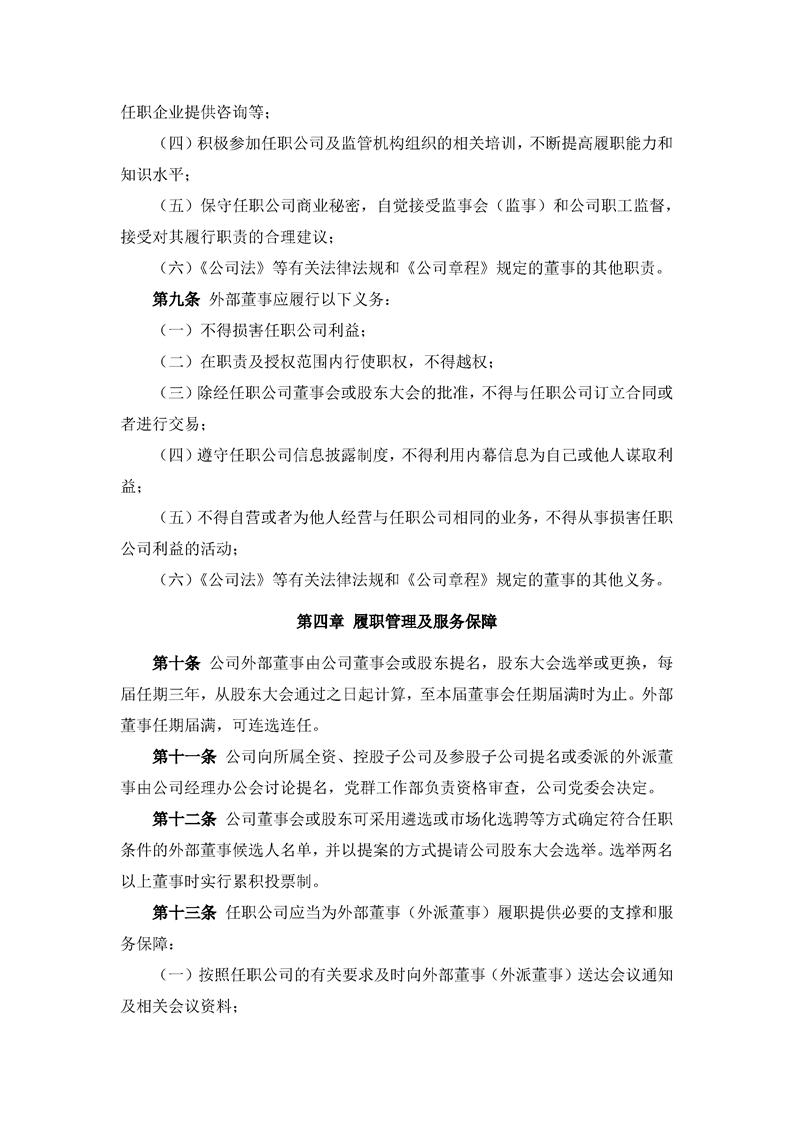 外部董事選聘與管理制度(2022年8月)