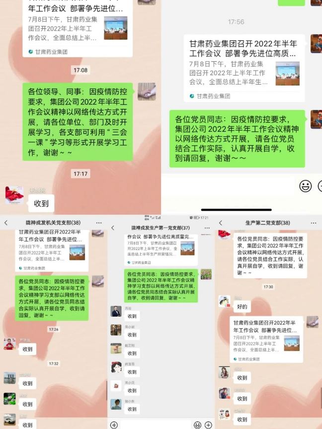 根據(jù)蘭州市新冠肺炎疫情聯(lián)防聯(lián)控領(lǐng)導(dǎo)小組關(guān)于疫情防控工作的有關(guān)要求,公司黨委安排以網(wǎng)絡(luò)傳達(dá)方式開展集團(tuán)公司2022年上半年工作會(huì)議精神學(xué)習(xí)工作。公司黨委要求公司各單位、部門及全體干部職工,結(jié)合各自工作實(shí)際認(rèn)真開展自學(xué);各基層黨組織要利用各自微信群等網(wǎng)絡(luò)學(xué)習(xí)陣地,對(duì)集團(tuán)公司會(huì)議精神進(jìn)行傳達(dá)學(xué)習(xí)。同時(shí),要求各單位、部門及各基層黨支部要積極做好會(huì)議精神的貫徹落實(shí),后期根據(jù)疫情防控措施調(diào)整有關(guān)要求,適時(shí)組織會(huì)議深入學(xué)習(xí),確保集團(tuán)公司2022年上半年工作會(huì)議精神落地落實(shí)。
