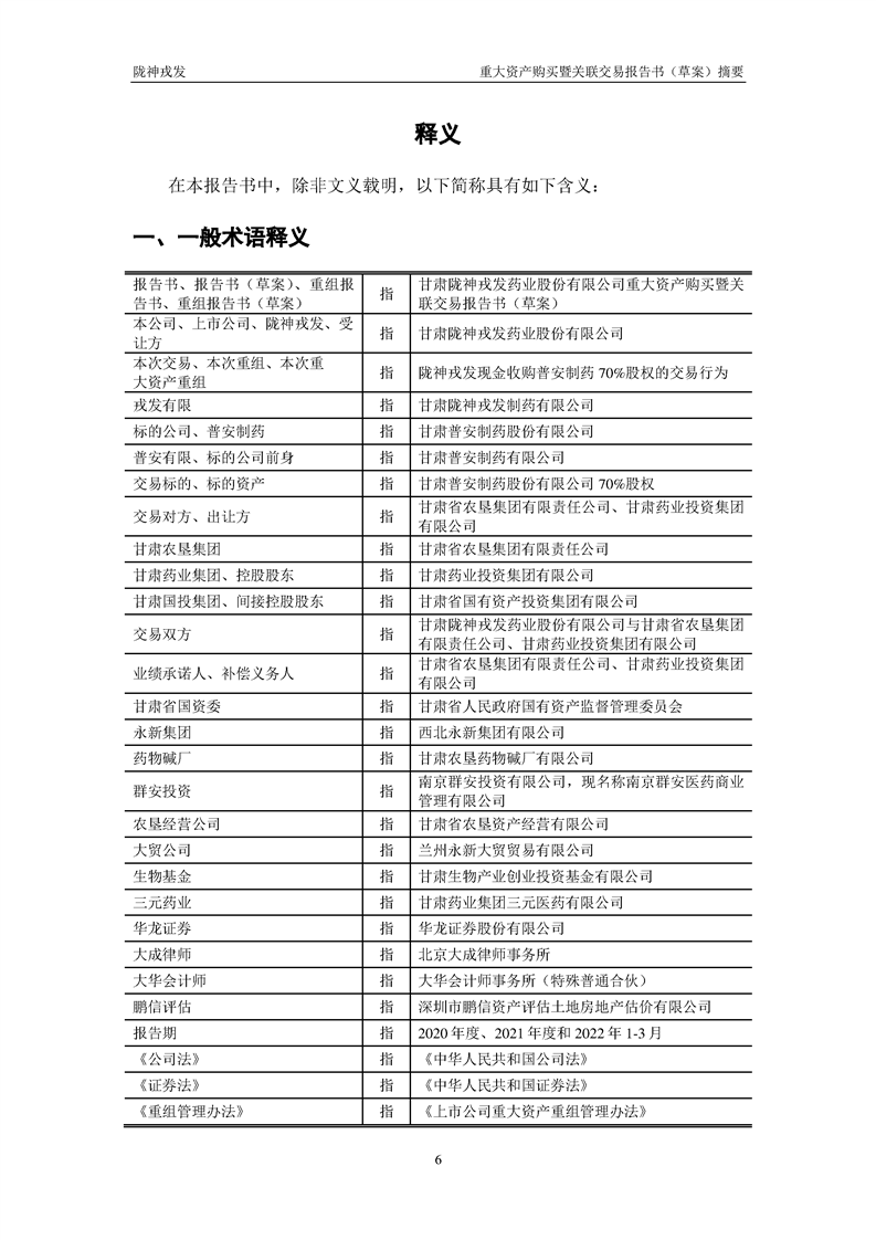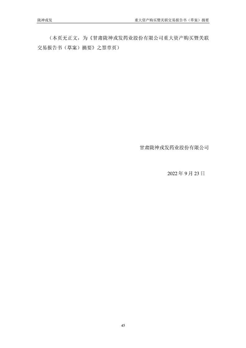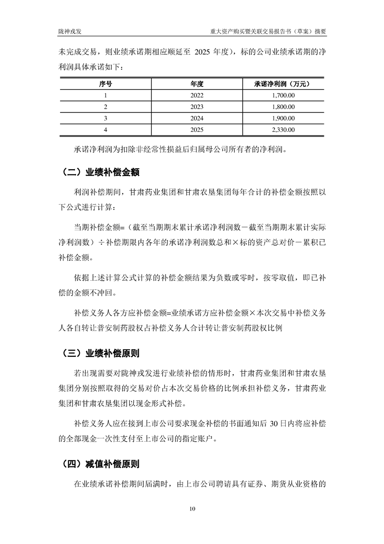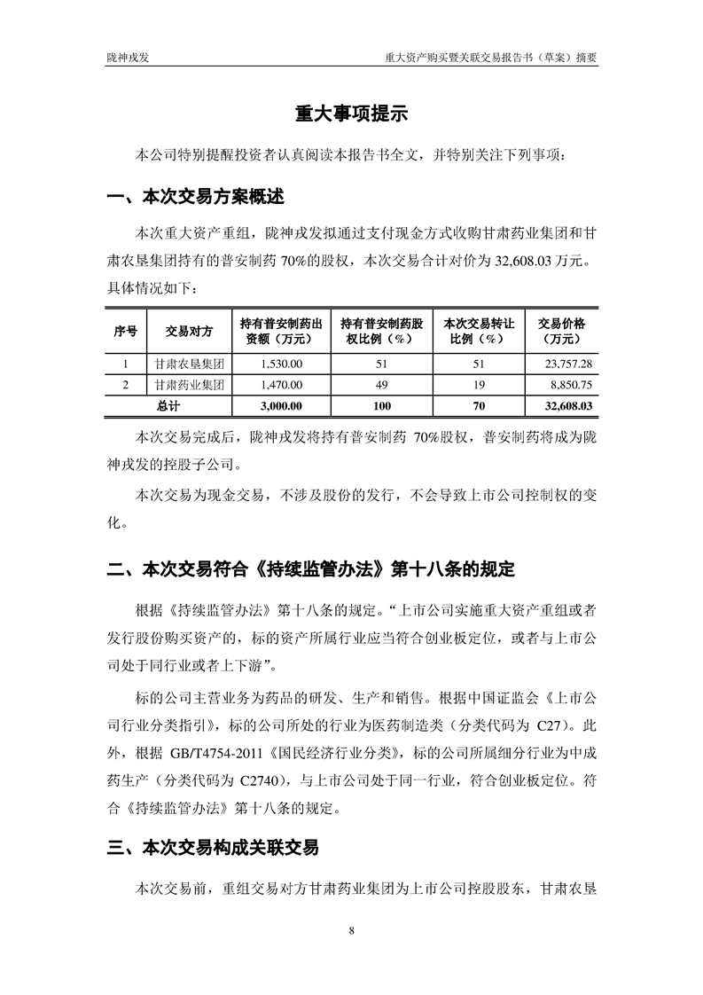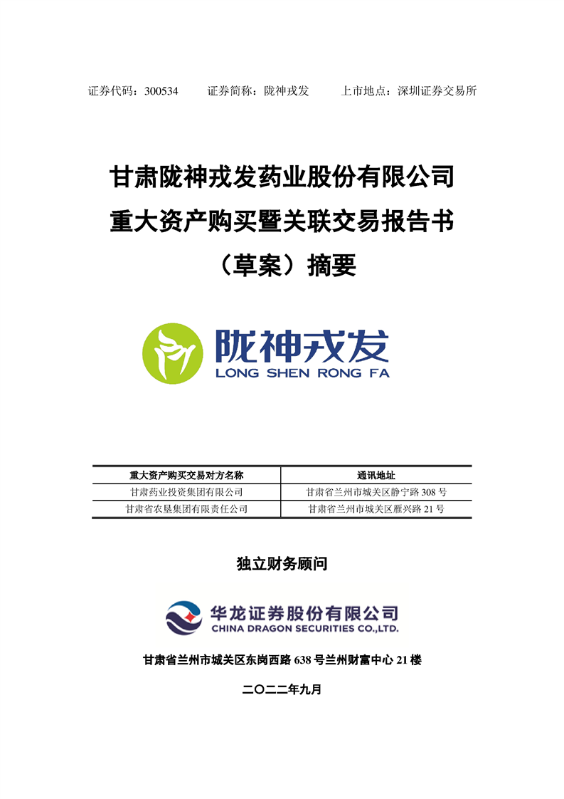 甘肅隴神戎發(fā)藥業(yè)股份有限公司重大資產(chǎn)購買暨關(guān)聯(lián)交易報(bào)告書(草案)摘要