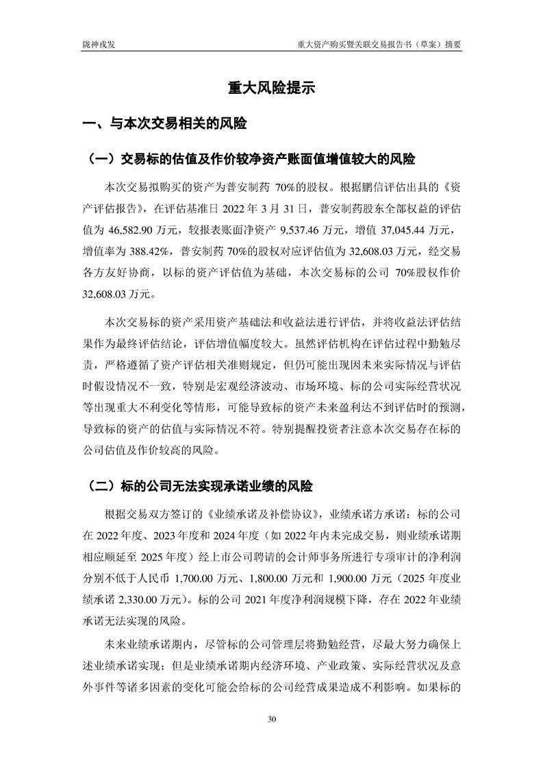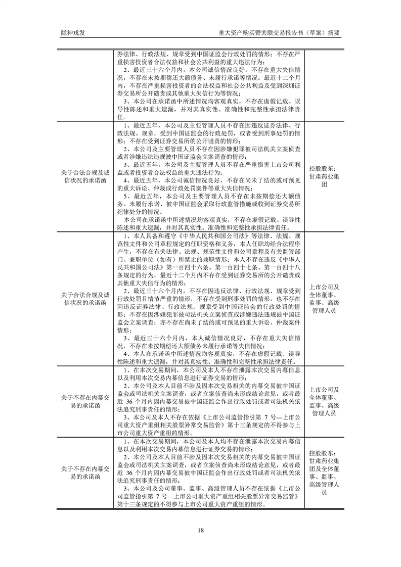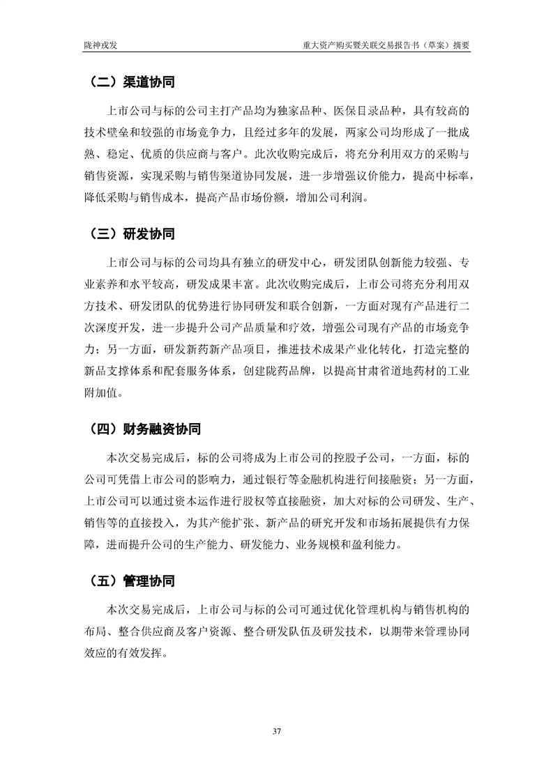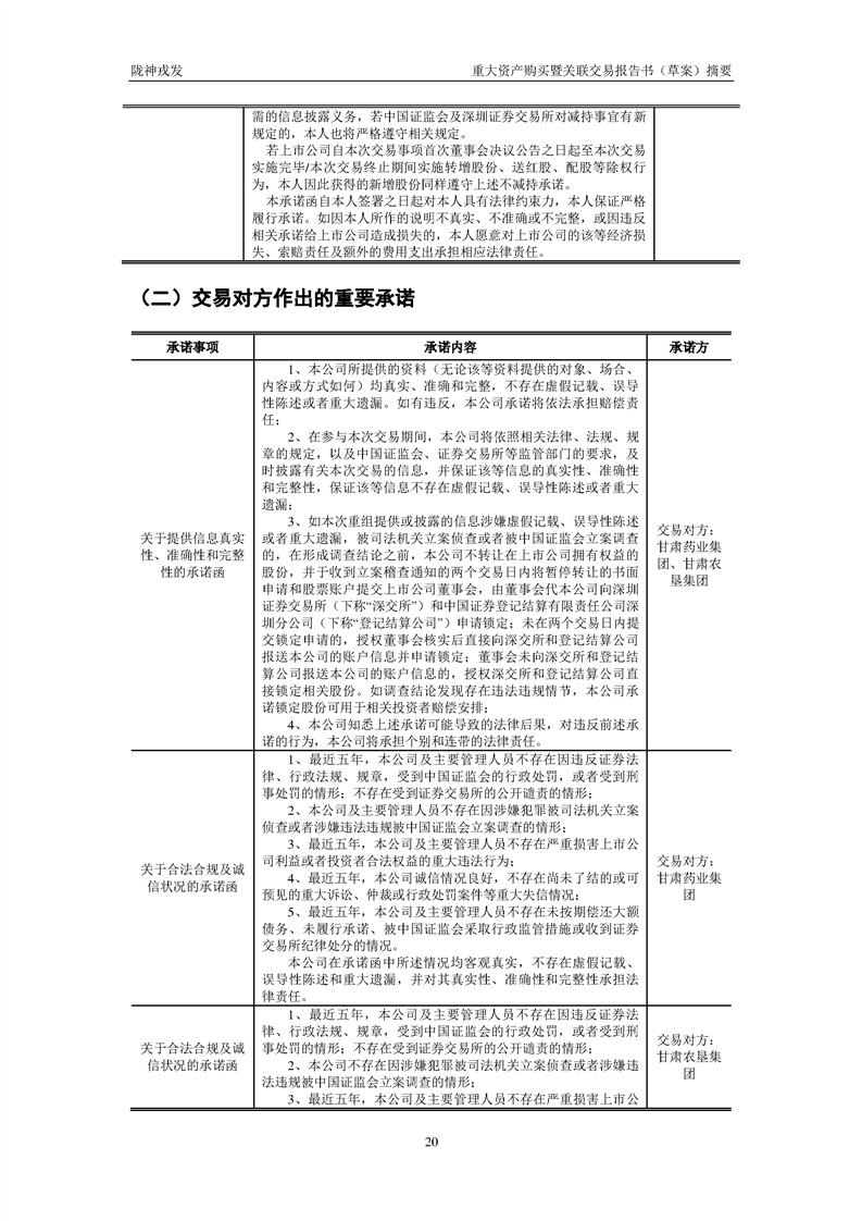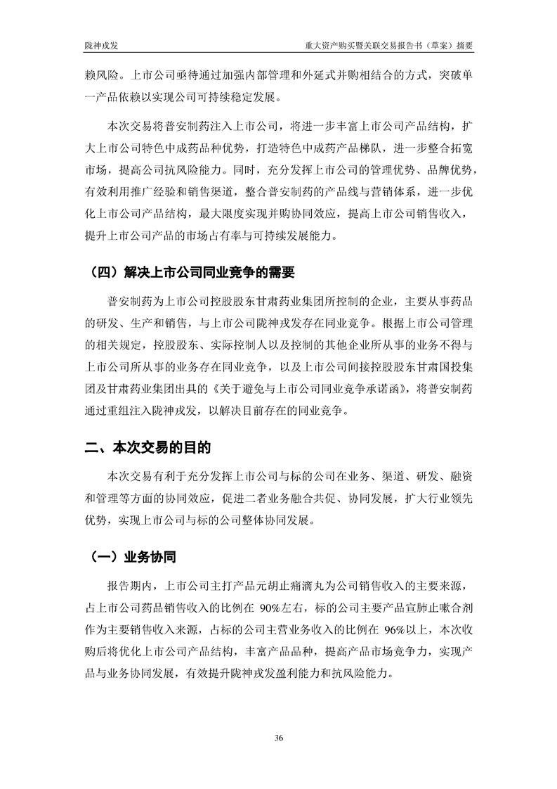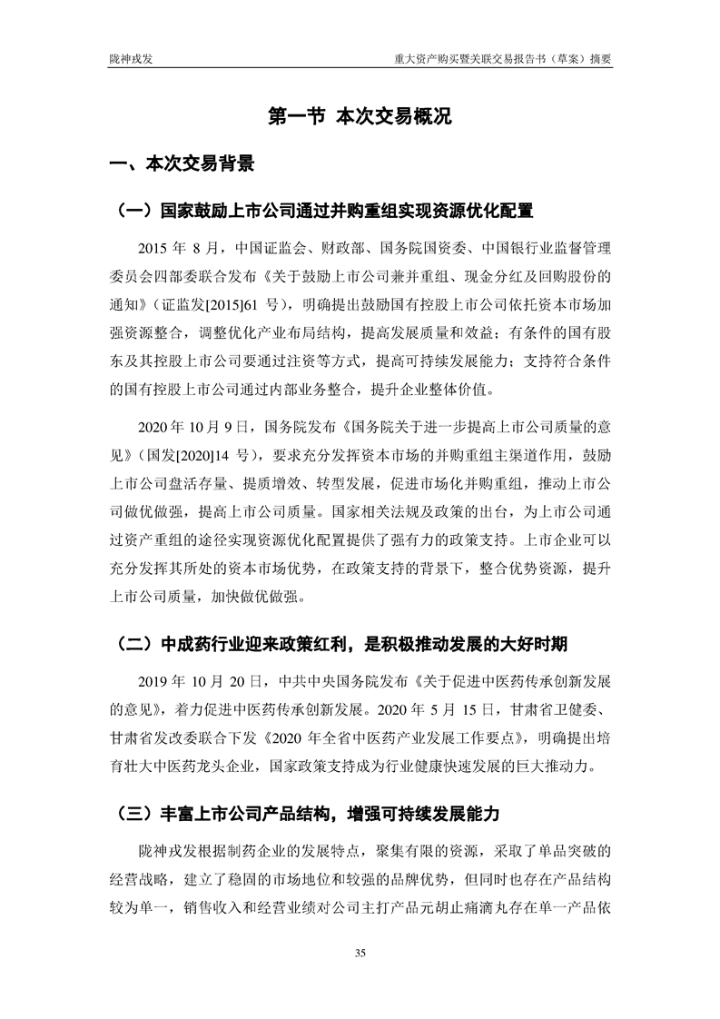 甘肅隴神戎發(fā)藥業(yè)股份有限公司重大資產(chǎn)購買暨關(guān)聯(lián)交易報(bào)告書(草案)摘要