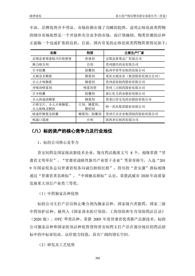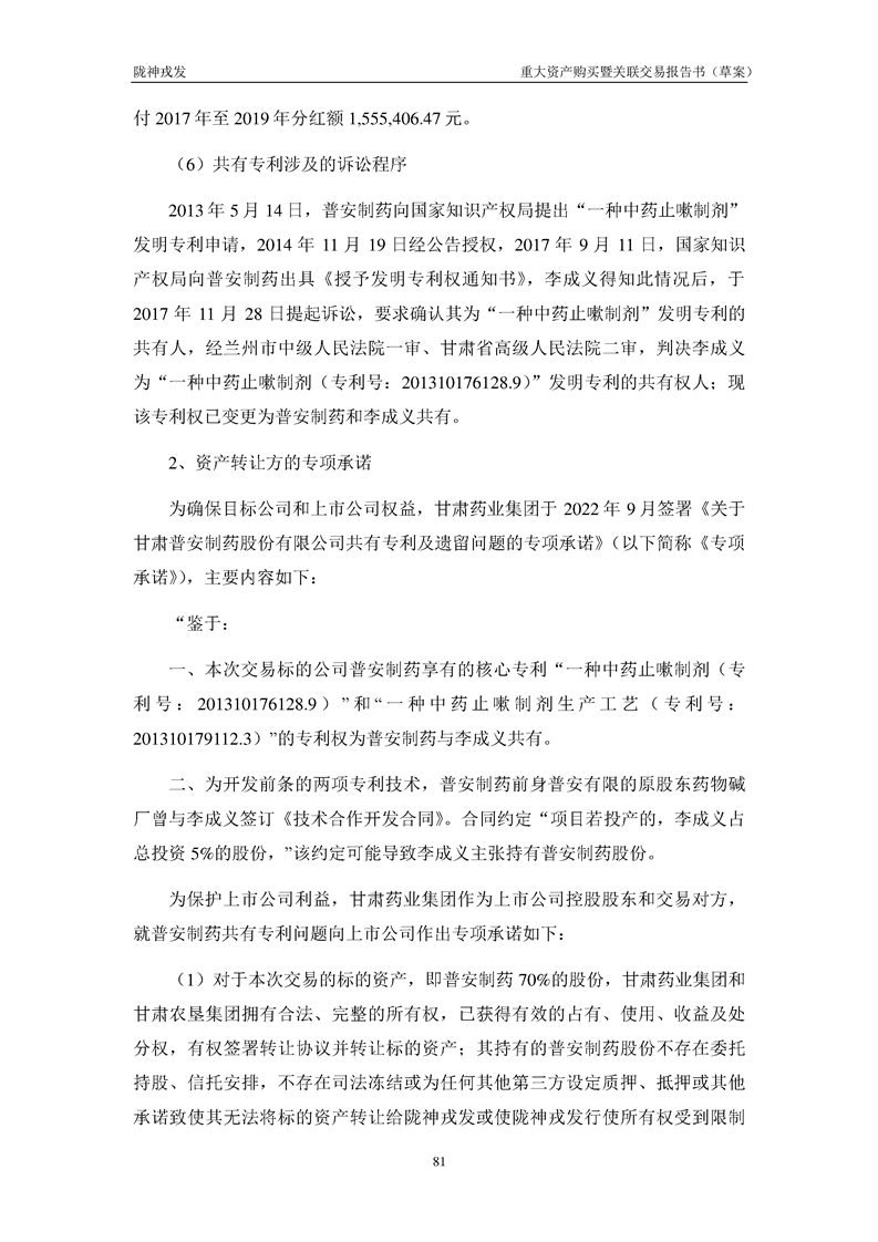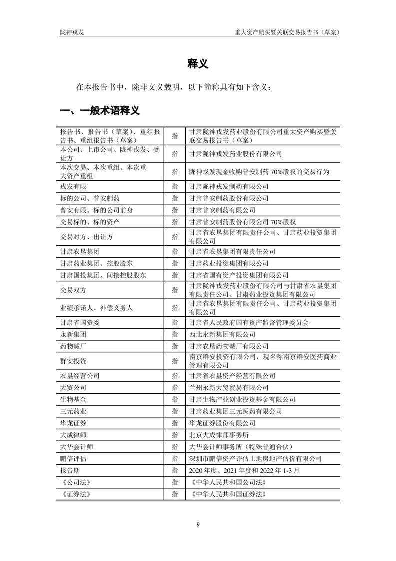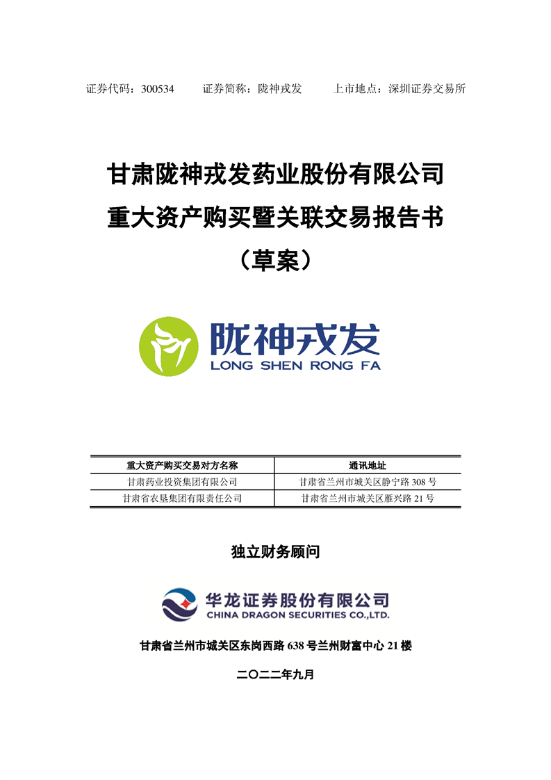 甘肅隴神戎發(fā)藥業(yè)股份有限公司重大資產(chǎn)購買暨關(guān)聯(lián)交易報(bào)告書(草案)