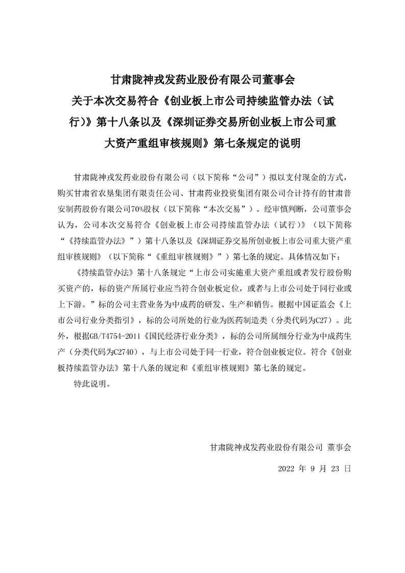 董事會關(guān)于本次交易符合《創(chuàng)業(yè)板上市公司持續(xù)監(jiān)管辦法(試行)》第十八條以及《深圳證券交易所創(chuàng)業(yè)板上市公司重大資產(chǎn)重組審核規(guī)則》第七條規(guī)定的說明