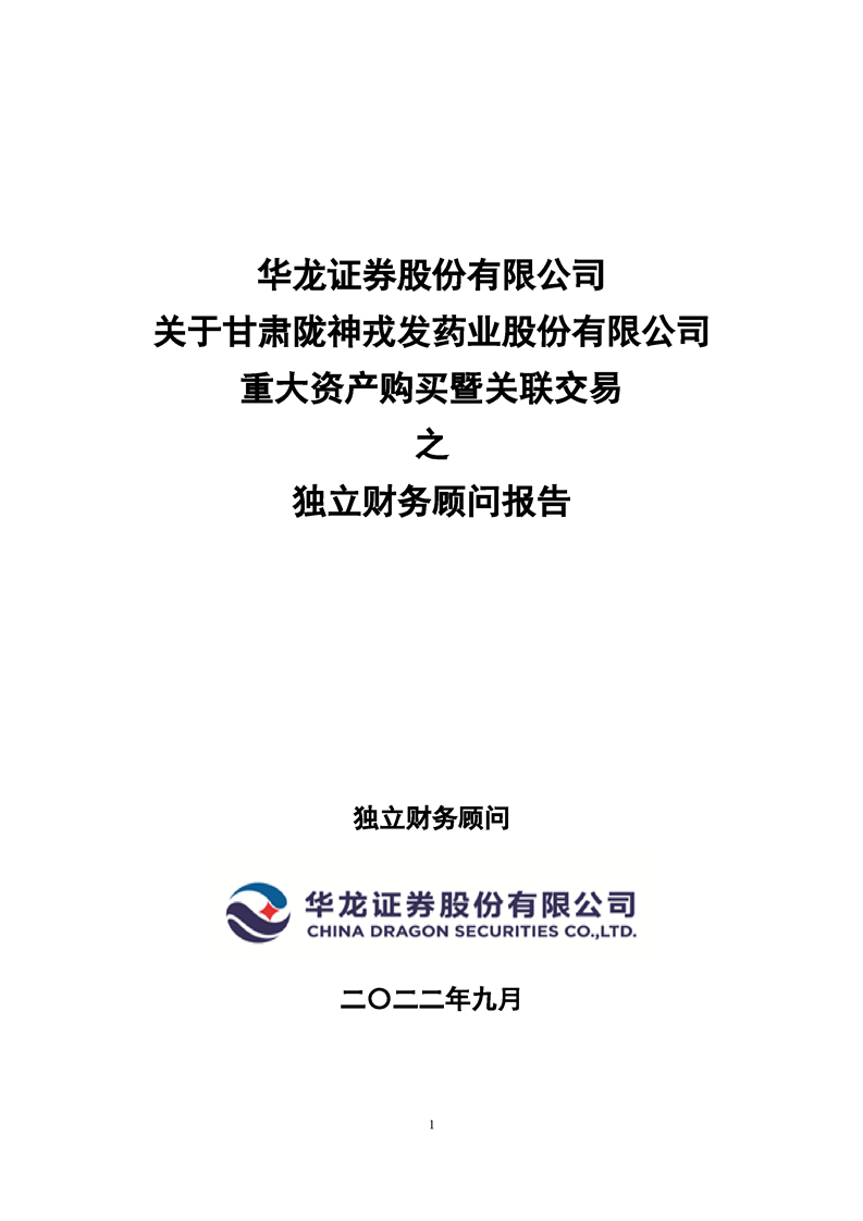 隴神戎發(fā):華龍證券股份有限公司關(guān)于甘肅隴神戎發(fā)藥業(yè)股份有限公司重大資產(chǎn)購(gòu)買(mǎi)暨關(guān)聯(lián)交易之獨(dú)立財(cái)務(wù)顧問(wèn)報(bào)告