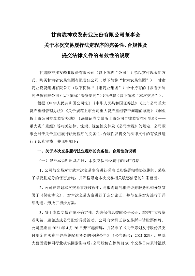董事會(huì)關(guān)于本次交易履行法定程序的完備性、合規(guī)性及提交法律文件的有效性的說明