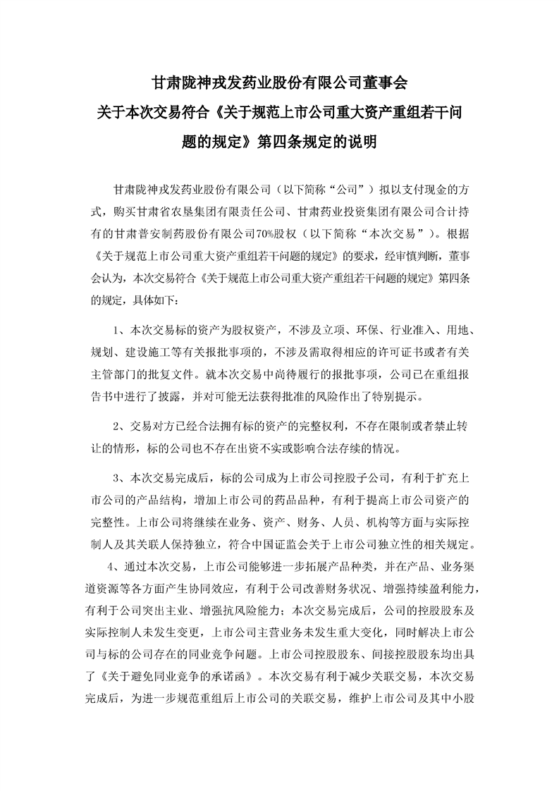 董事會關(guān)于本次交易符合《關(guān)于規(guī)范上市公司重大資產(chǎn)重組組若干問題的規(guī)定》第四條規(guī)定的說明