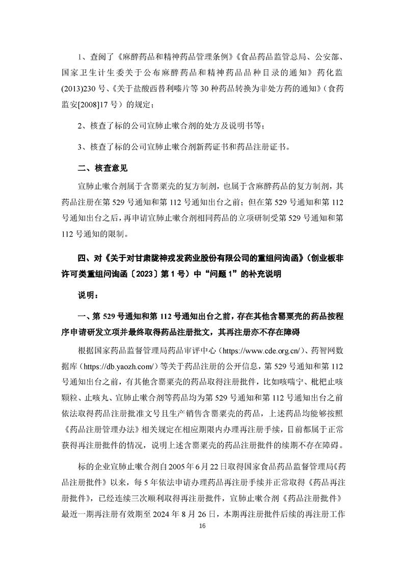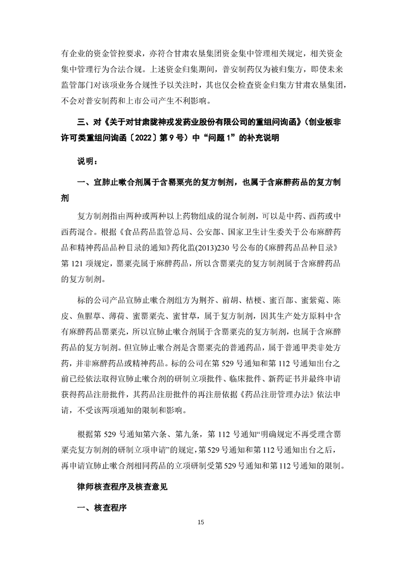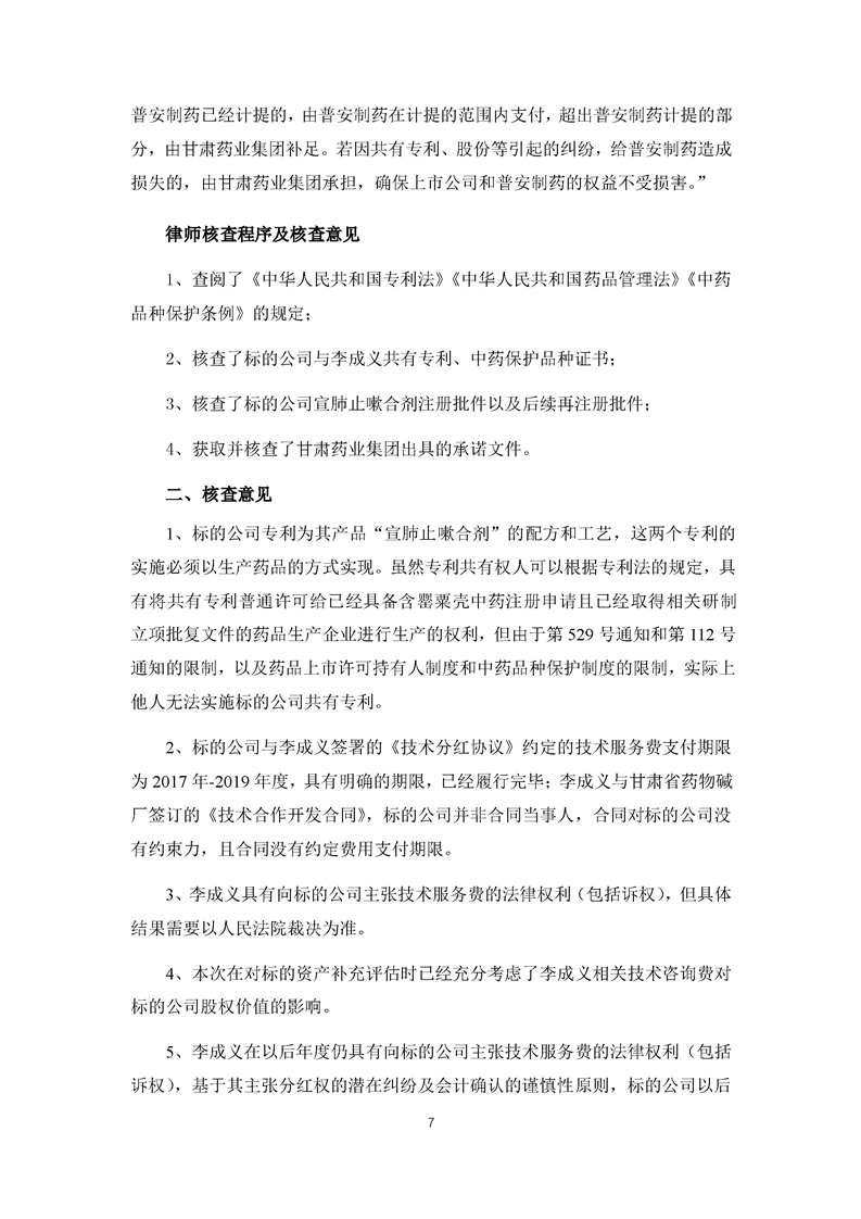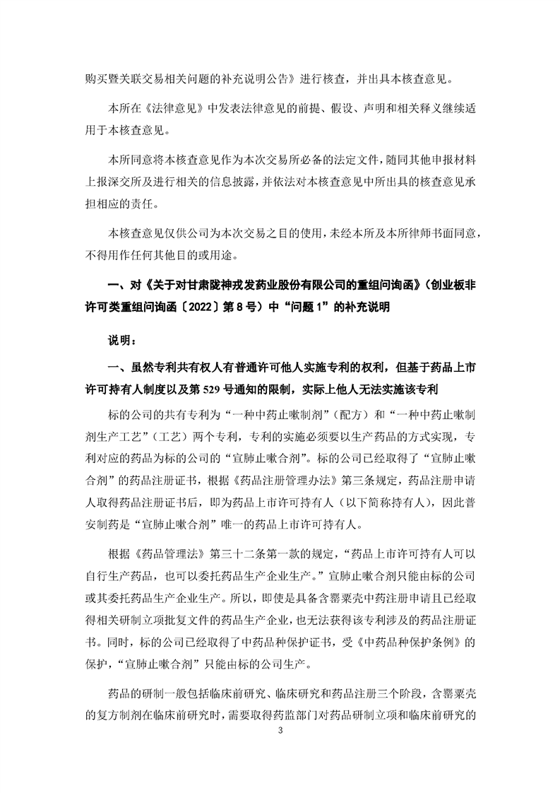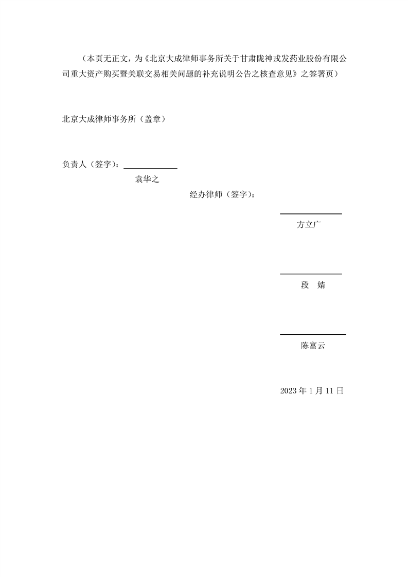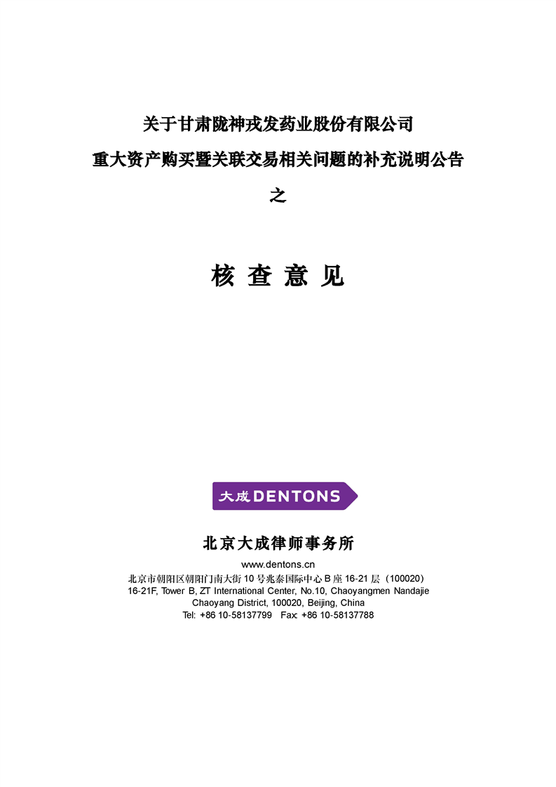 北京大成律師事務(wù)所關(guān)于甘肅隴神戎發(fā)藥業(yè)股份有限公司重大資產(chǎn)購(gòu)買暨關(guān)聯(lián)交易相關(guān)問(wèn)題的補(bǔ)充說(shuō)明公告之核查意見(jiàn)