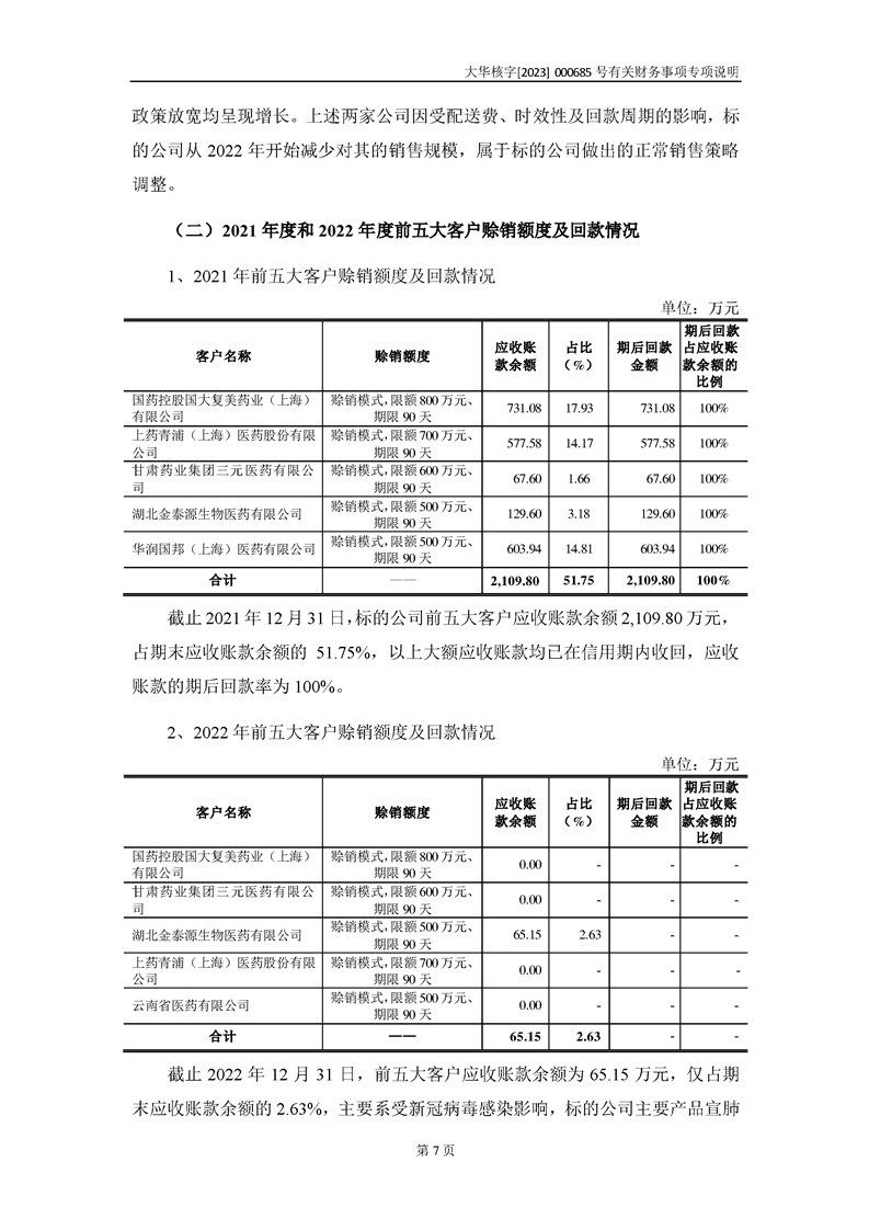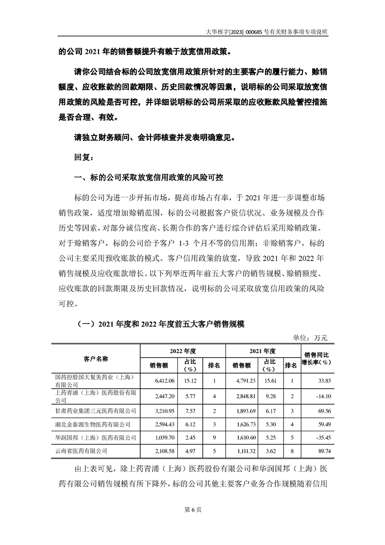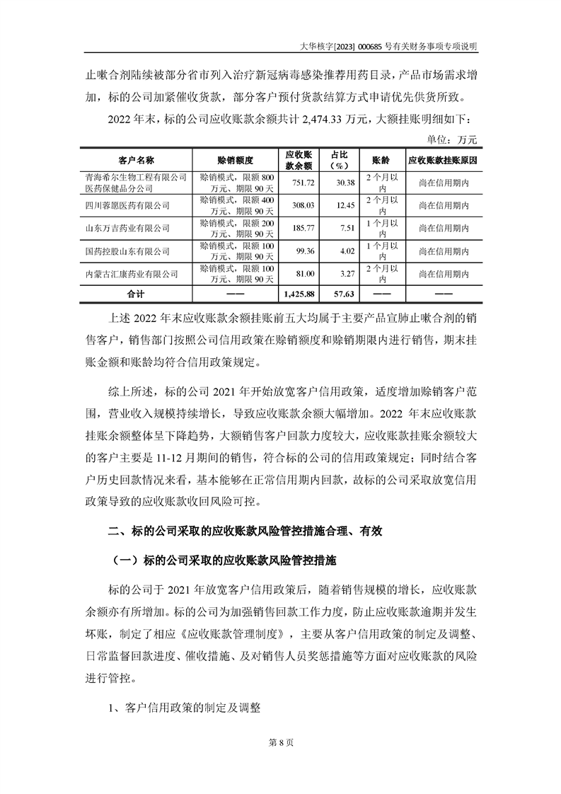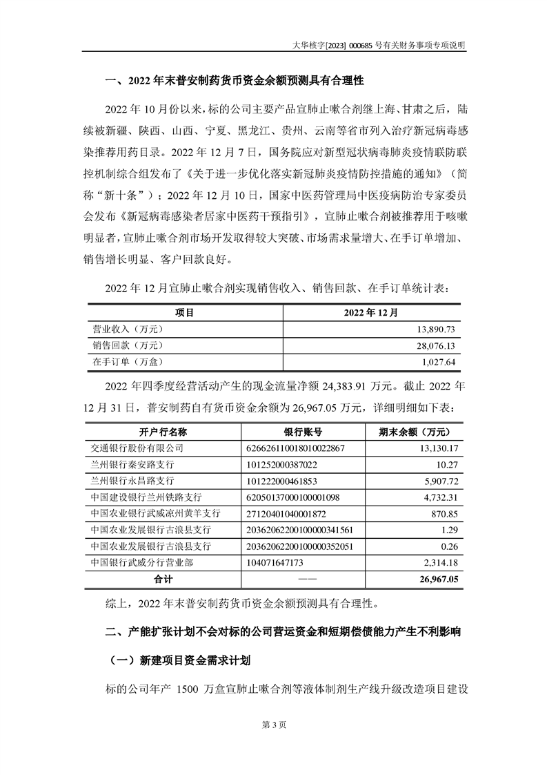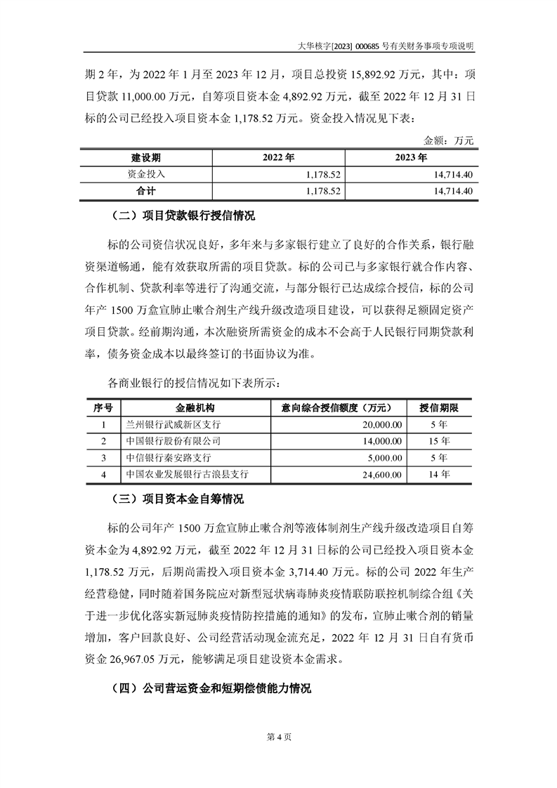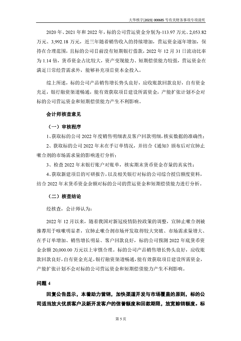 大華會(huì)計(jì)師事務(wù)所關(guān)于深圳證券交易所對甘肅隴神戎發(fā)藥業(yè)股份有限公司的重組問詢函中有關(guān)財(cái)務(wù)事項(xiàng)的專項(xiàng)說明-大華核字[2023]000685號(hào)