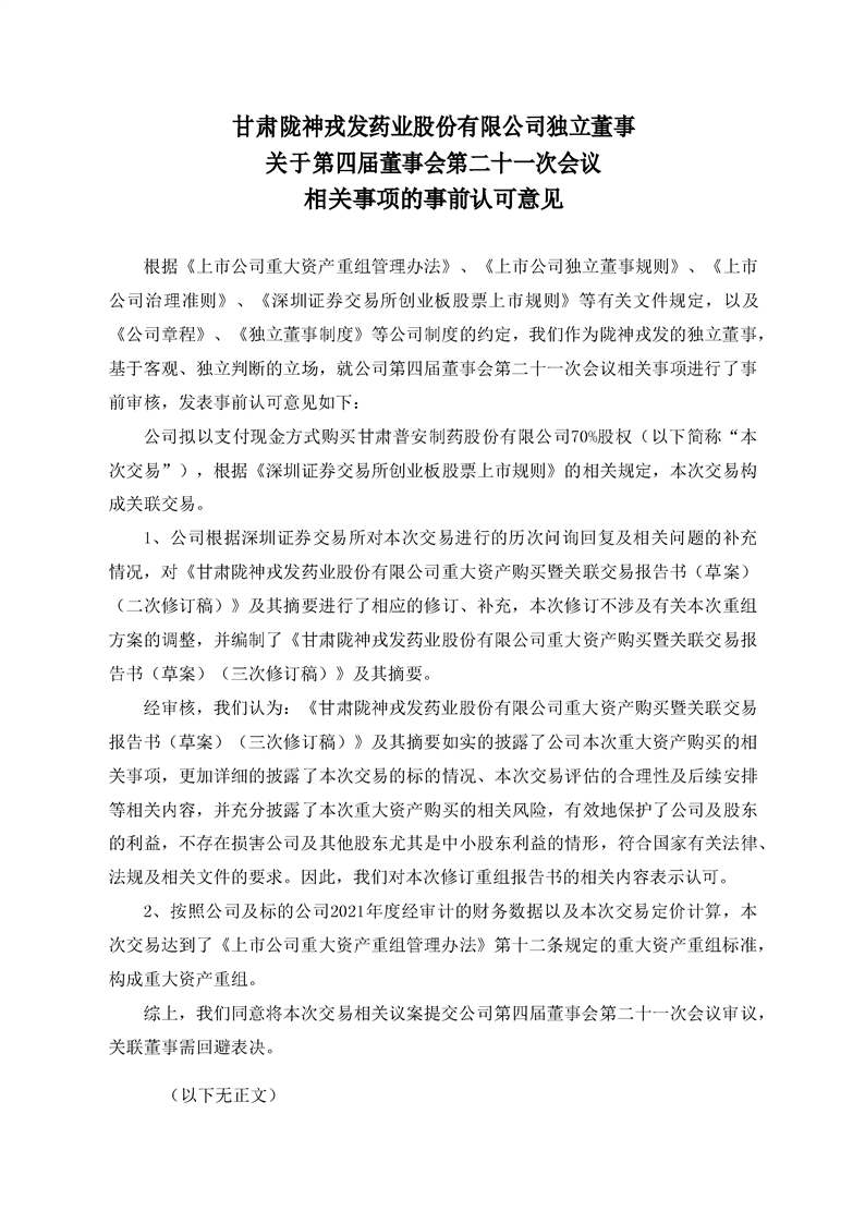 獨(dú)立董事關(guān)于第四屆董事會(huì)第二十一次會(huì)議相關(guān)事項(xiàng)的事前認(rèn)可的意見