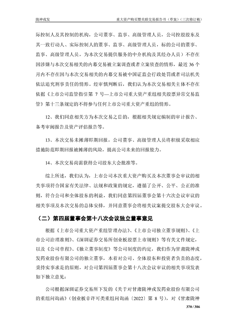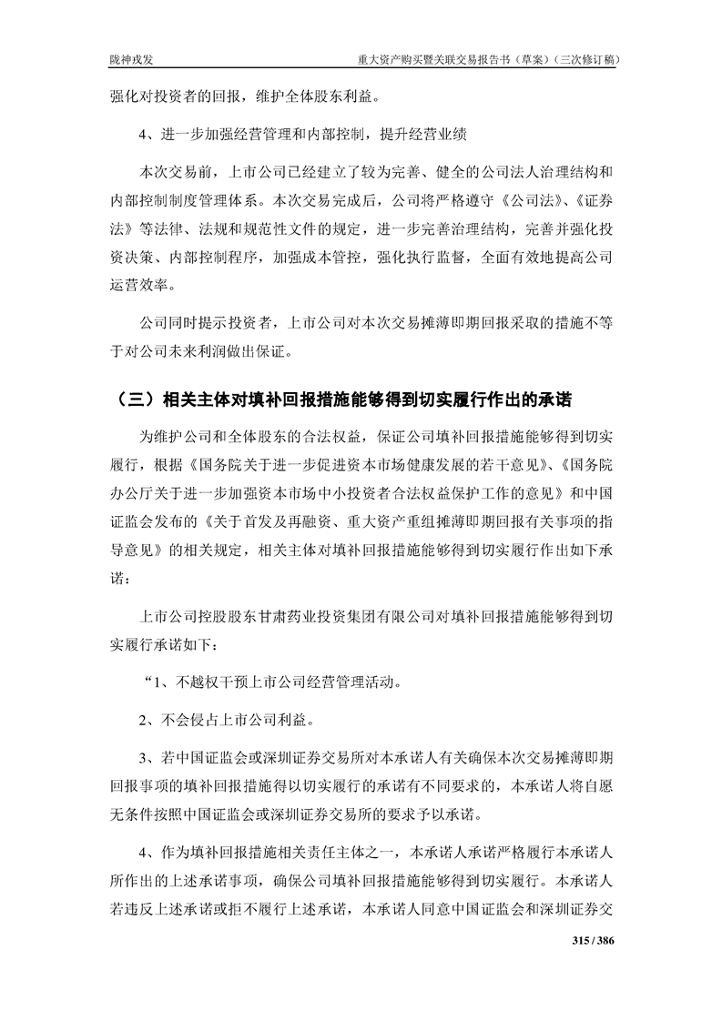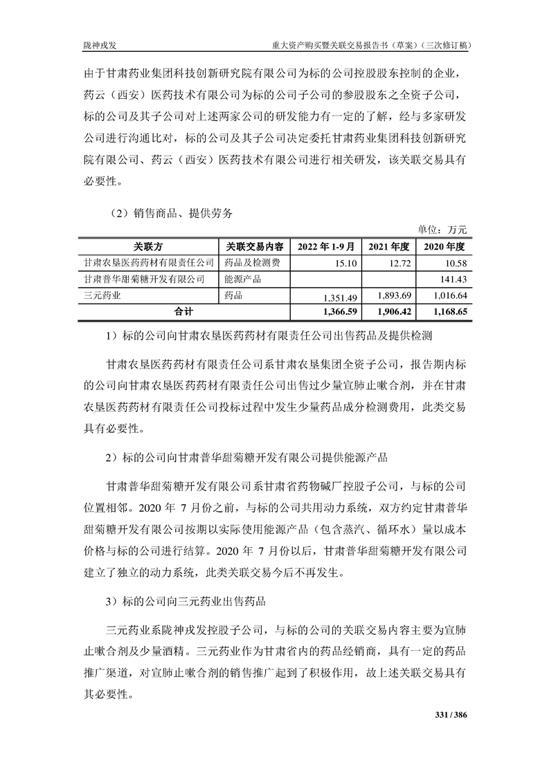 甘肅隴神戎發(fā)藥業(yè)股份有限公司重大資產(chǎn)購買暨關(guān)聯(lián)交易報告書(草案)(三次修訂稿)
