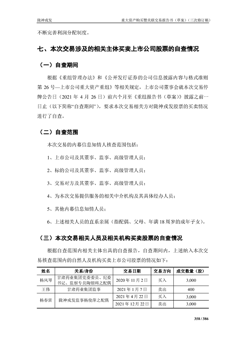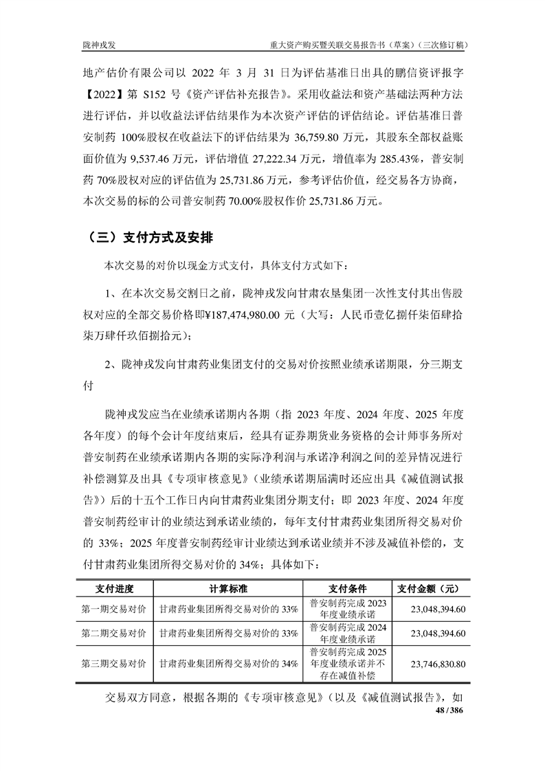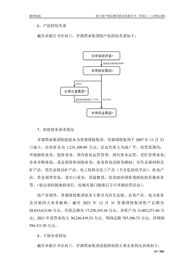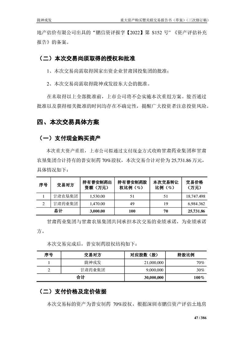 甘肅隴神戎發(fā)藥業(yè)股份有限公司重大資產(chǎn)購買暨關(guān)聯(lián)交易報告書(草案)(三次修訂稿)