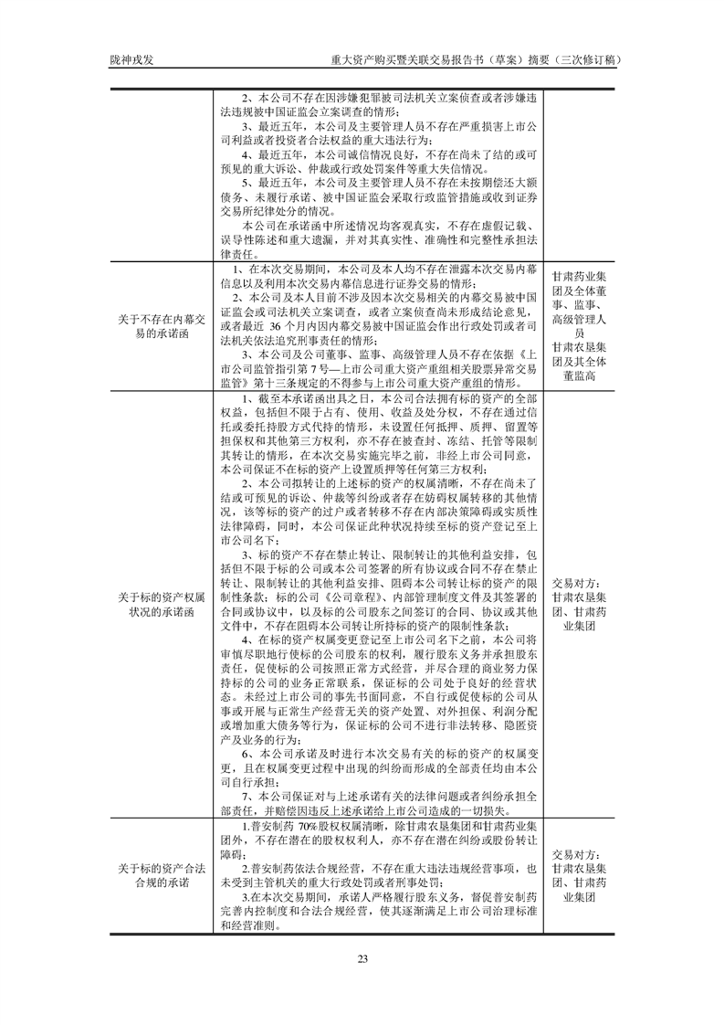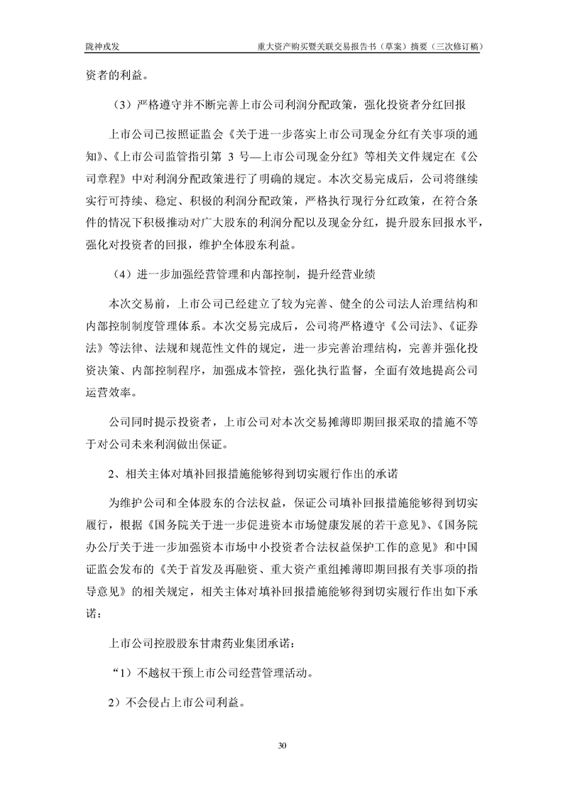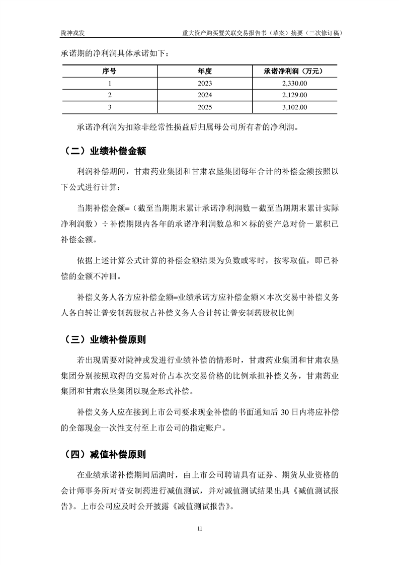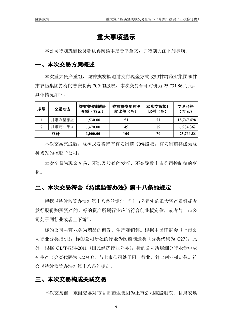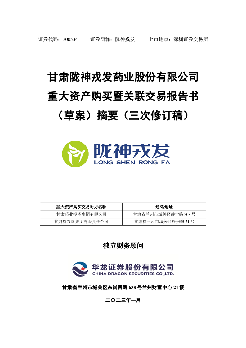 甘肅隴神戎發(fā)藥業(yè)股份有限公司重大資產(chǎn)購買暨關聯(lián)交易報告書(草案)摘要(三次修訂稿)