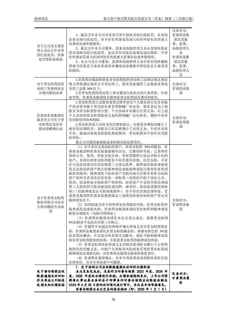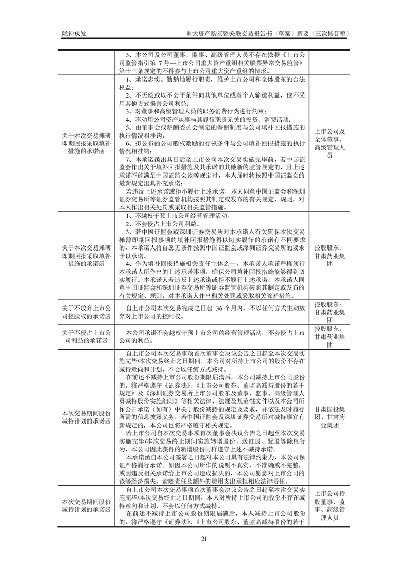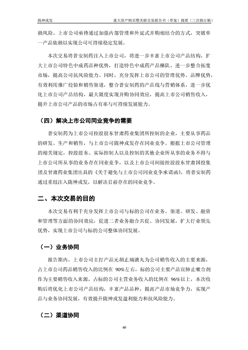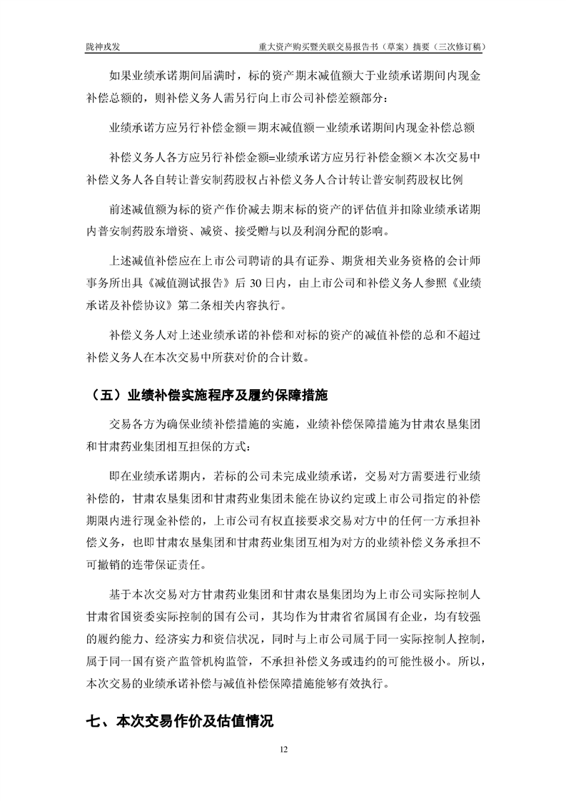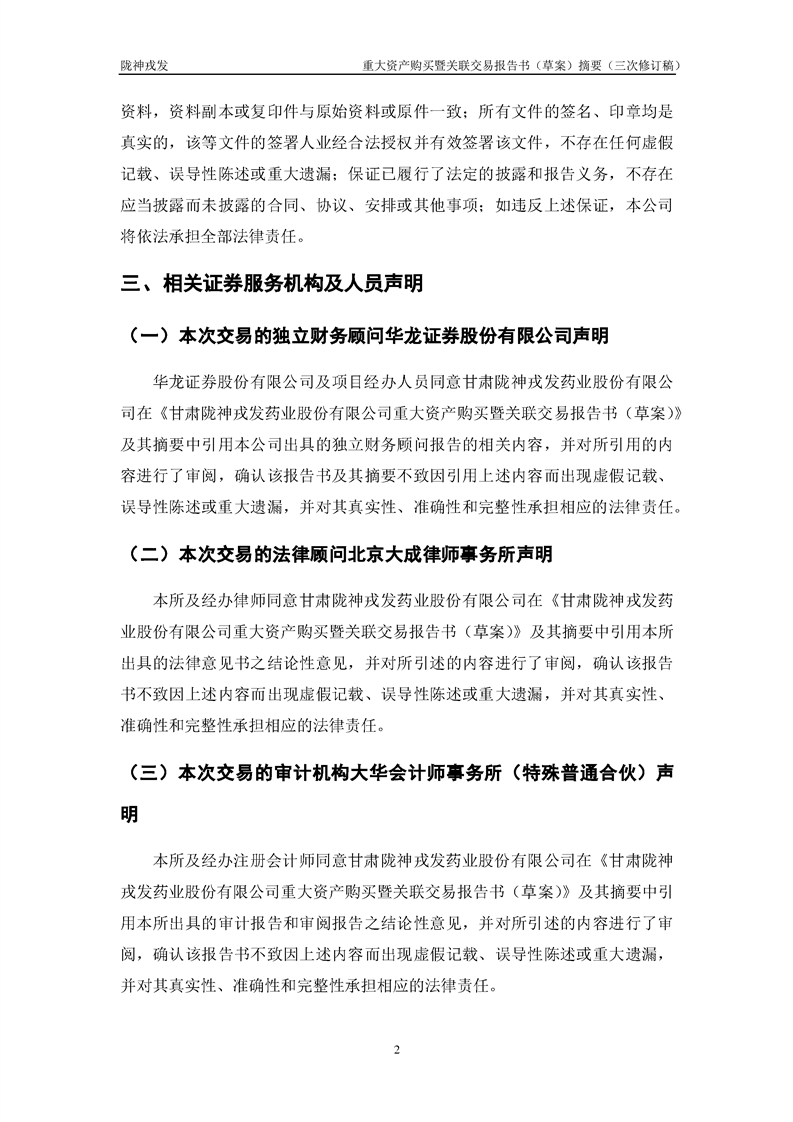 甘肅隴神戎發(fā)藥業(yè)股份有限公司重大資產(chǎn)購買暨關聯(lián)交易報告書(草案)摘要(三次修訂稿)