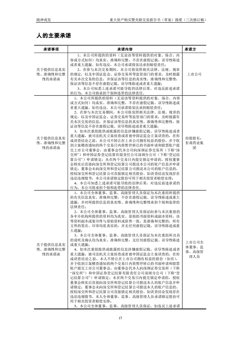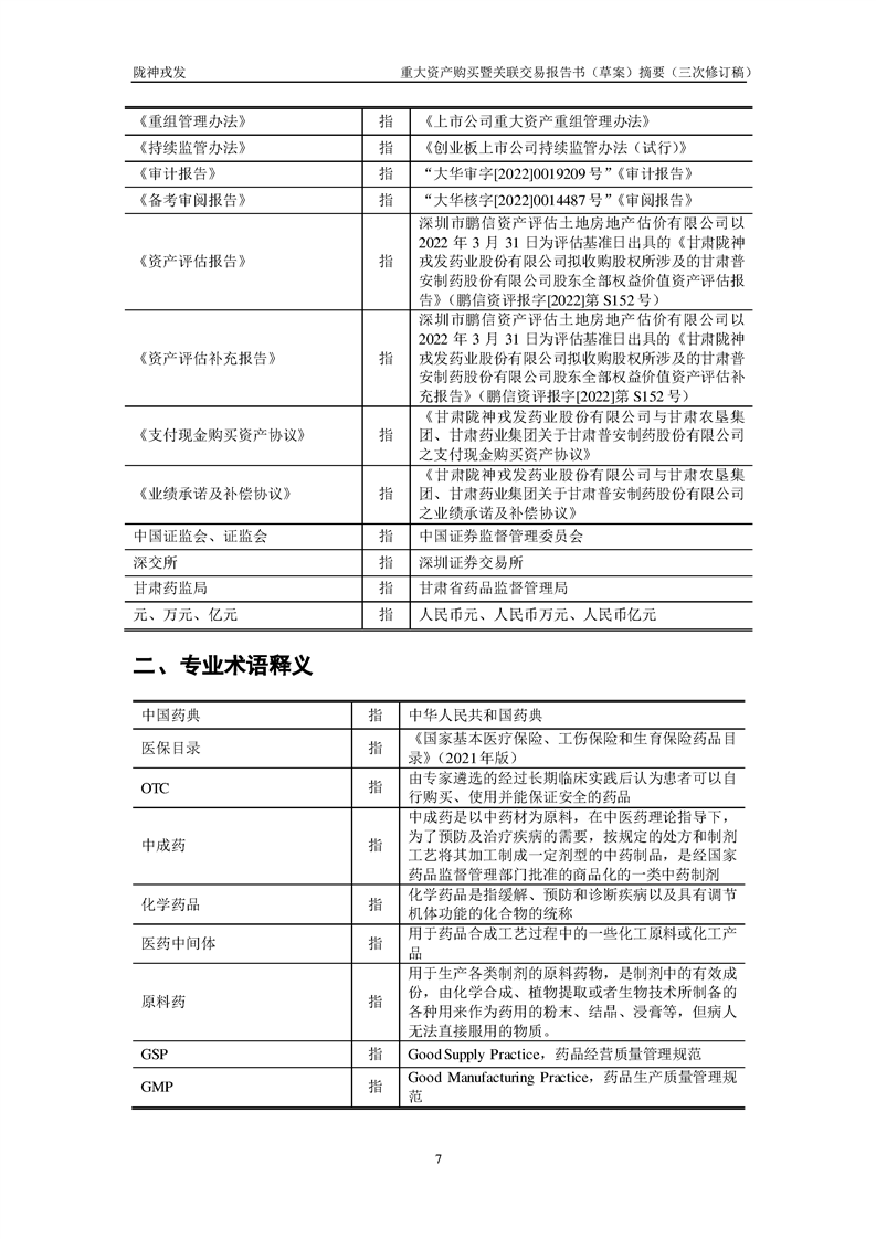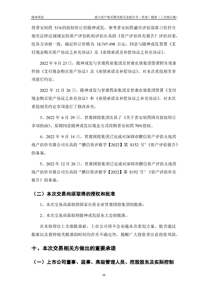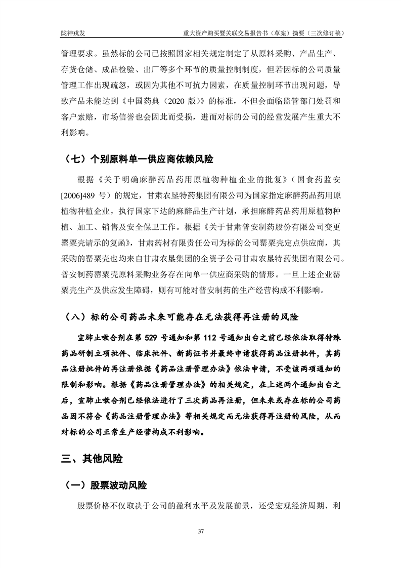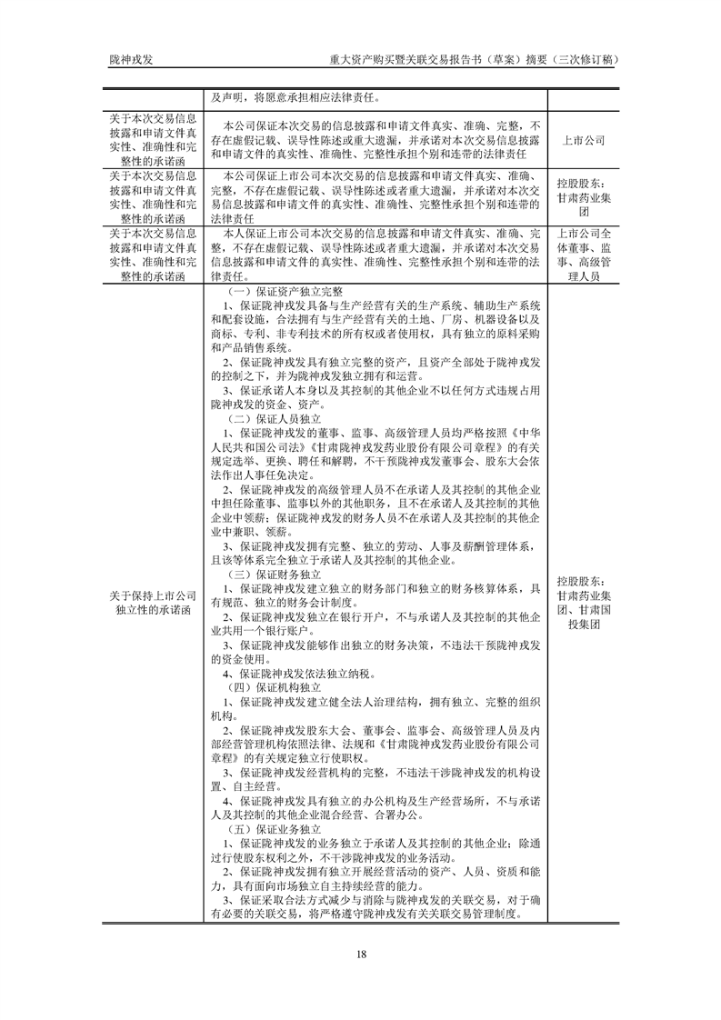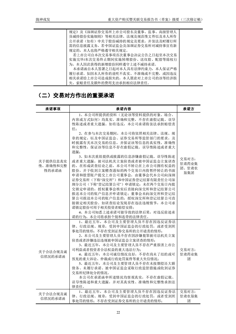 甘肅隴神戎發(fā)藥業(yè)股份有限公司重大資產(chǎn)購買暨關聯(lián)交易報告書(草案)摘要(三次修訂稿)