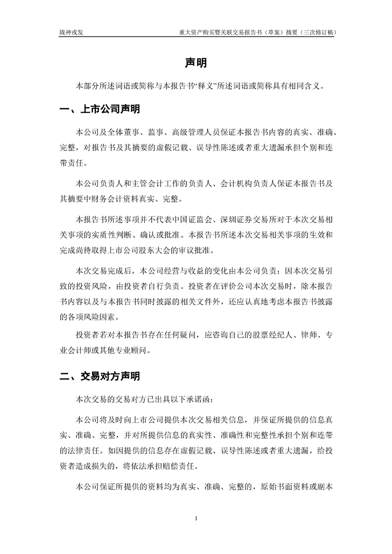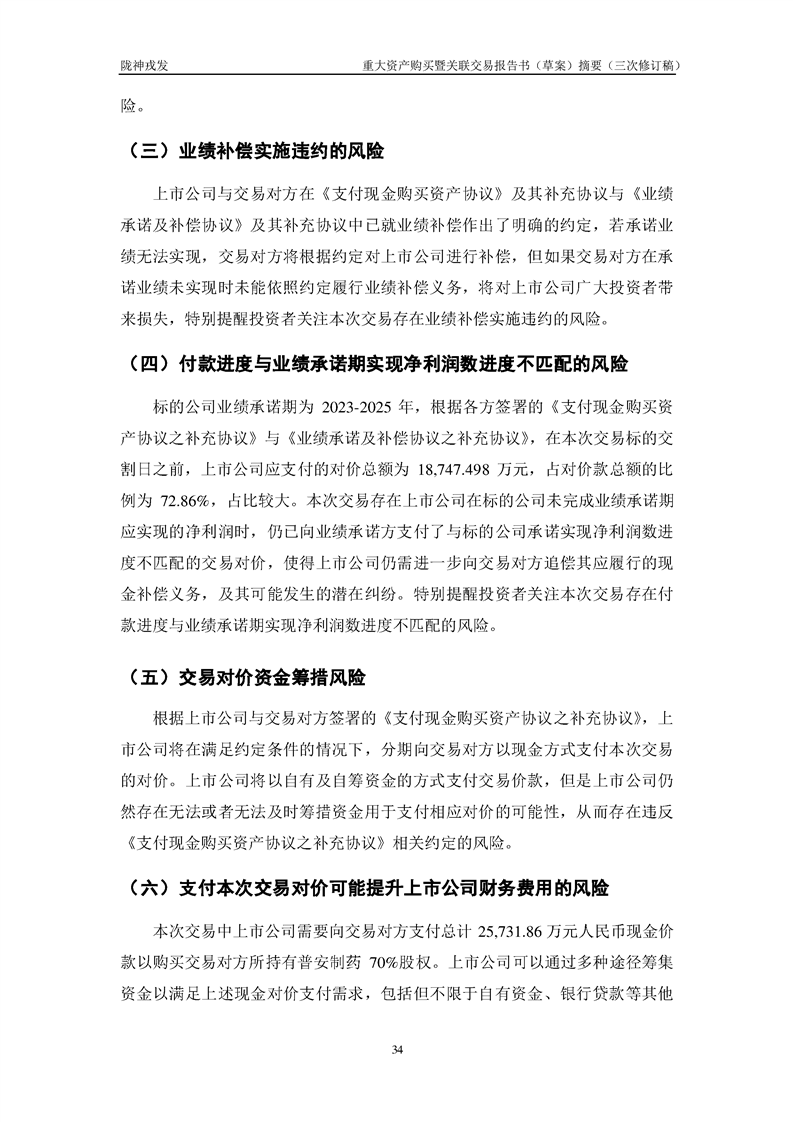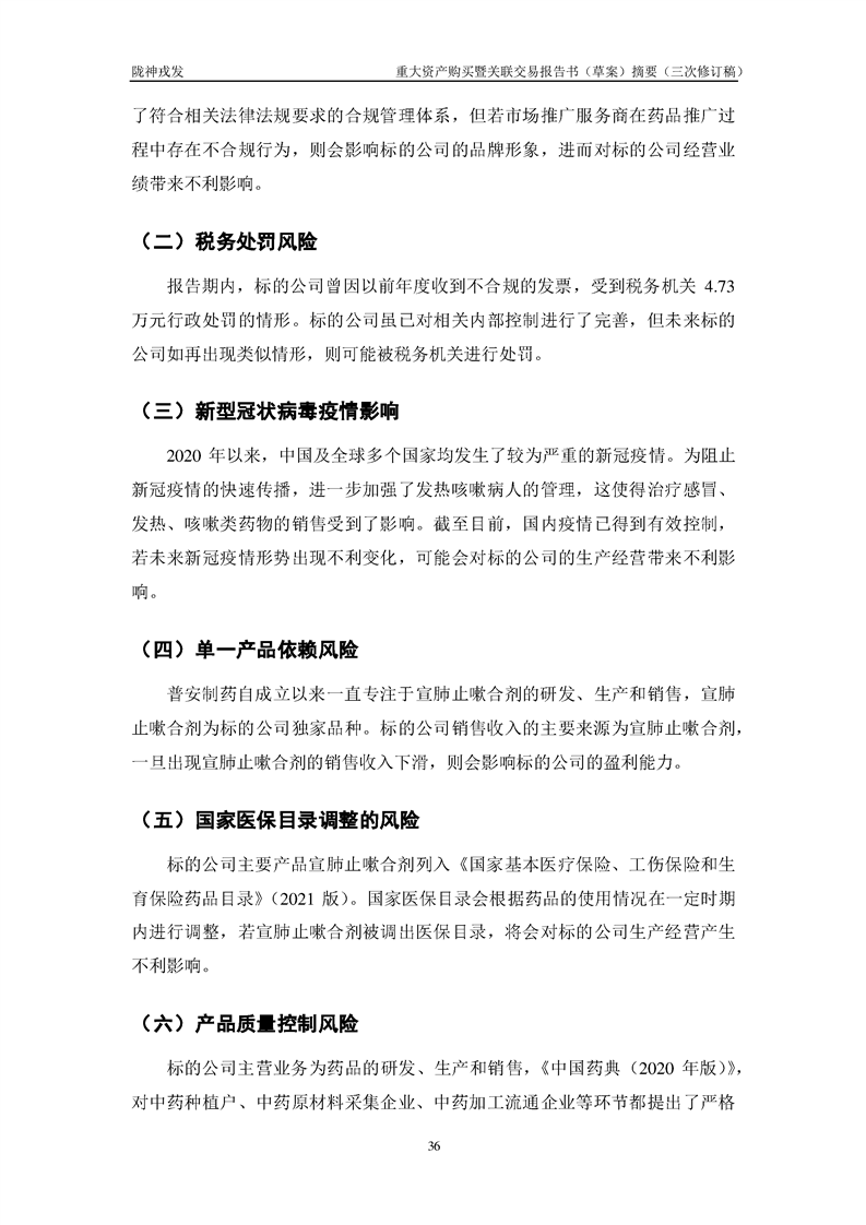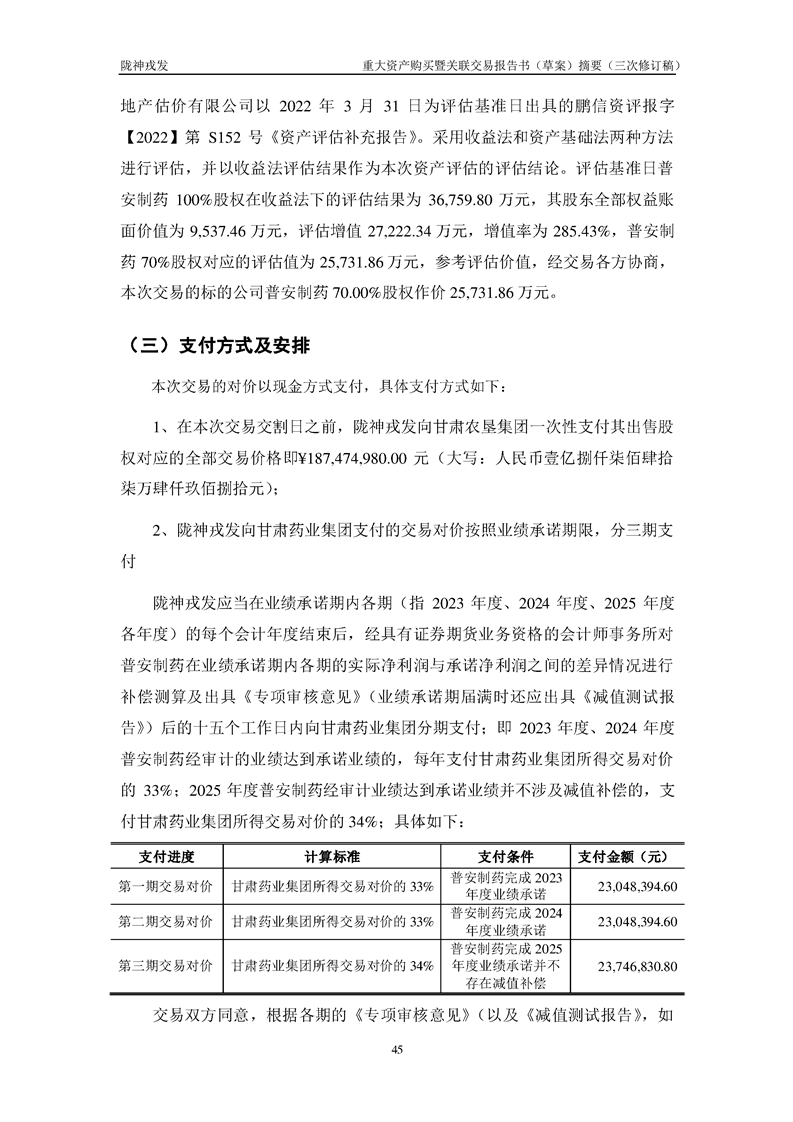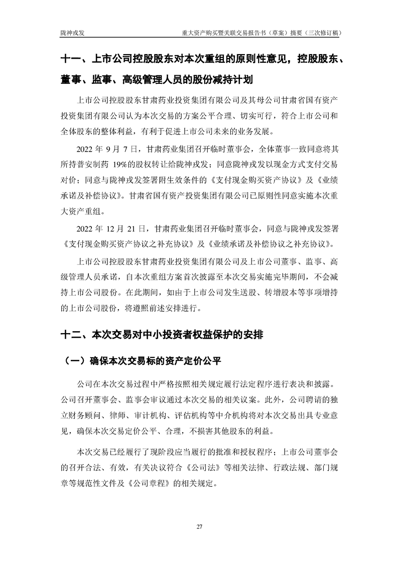 甘肅隴神戎發(fā)藥業(yè)股份有限公司重大資產(chǎn)購買暨關聯(lián)交易報告書(草案)摘要(三次修訂稿)