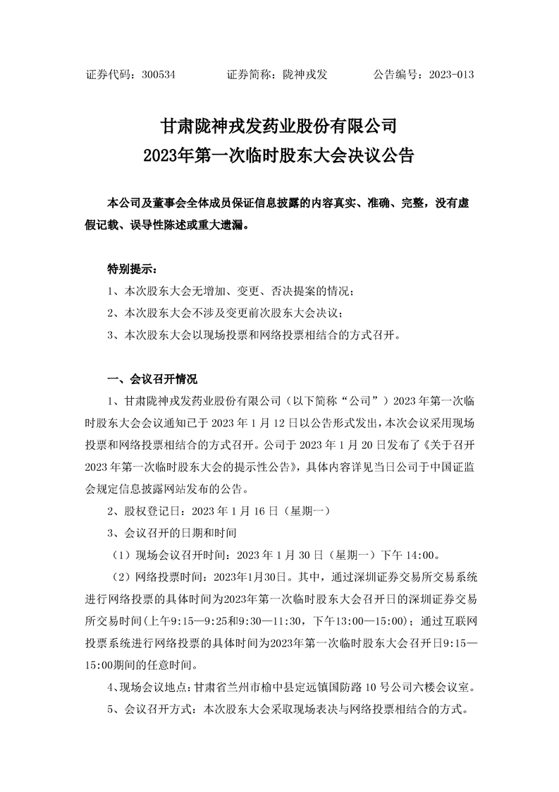 2023年第一次臨時(shí)股東大會(huì)決議公告