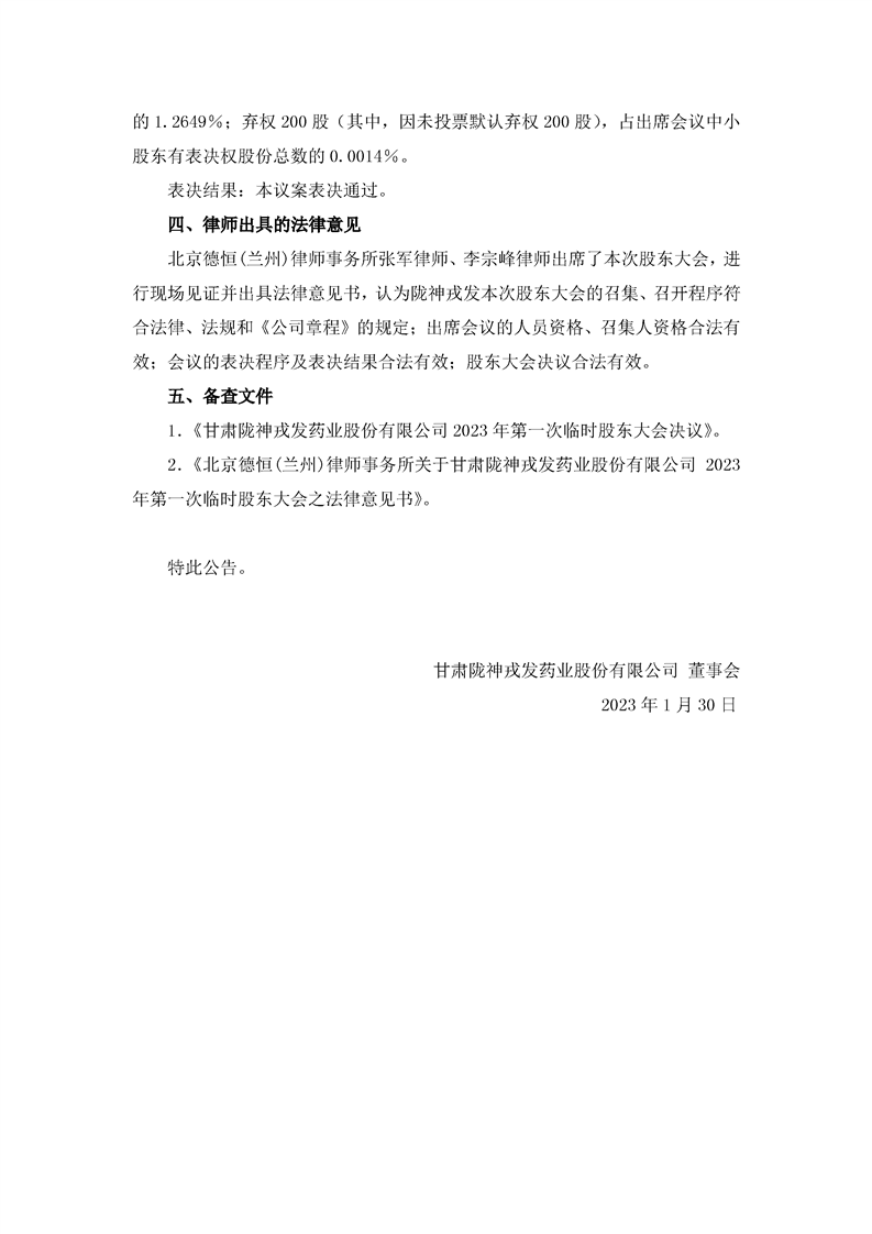 隴神戎發(fā):2023年第一次臨時(shí)股東大會(huì)決議公告