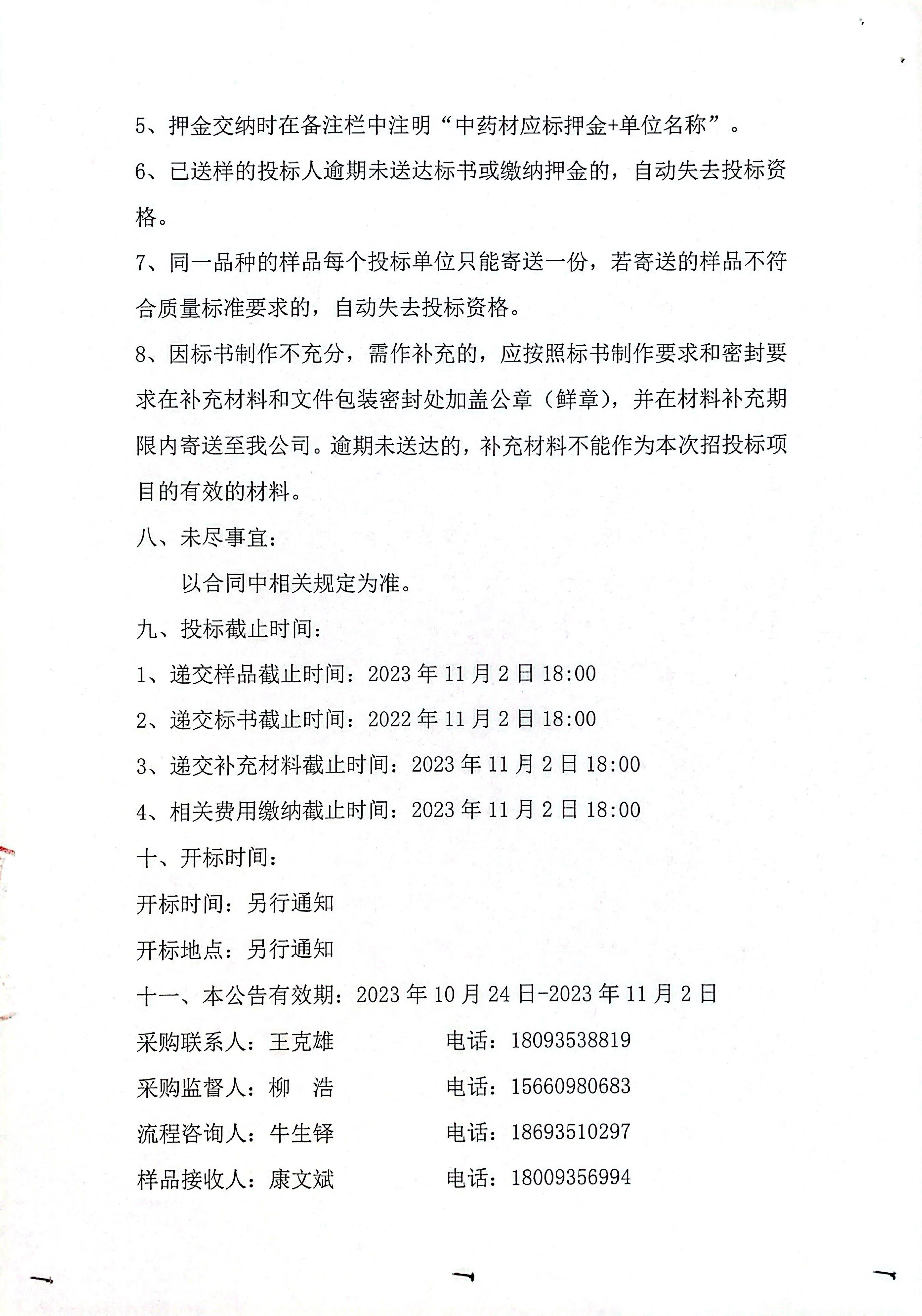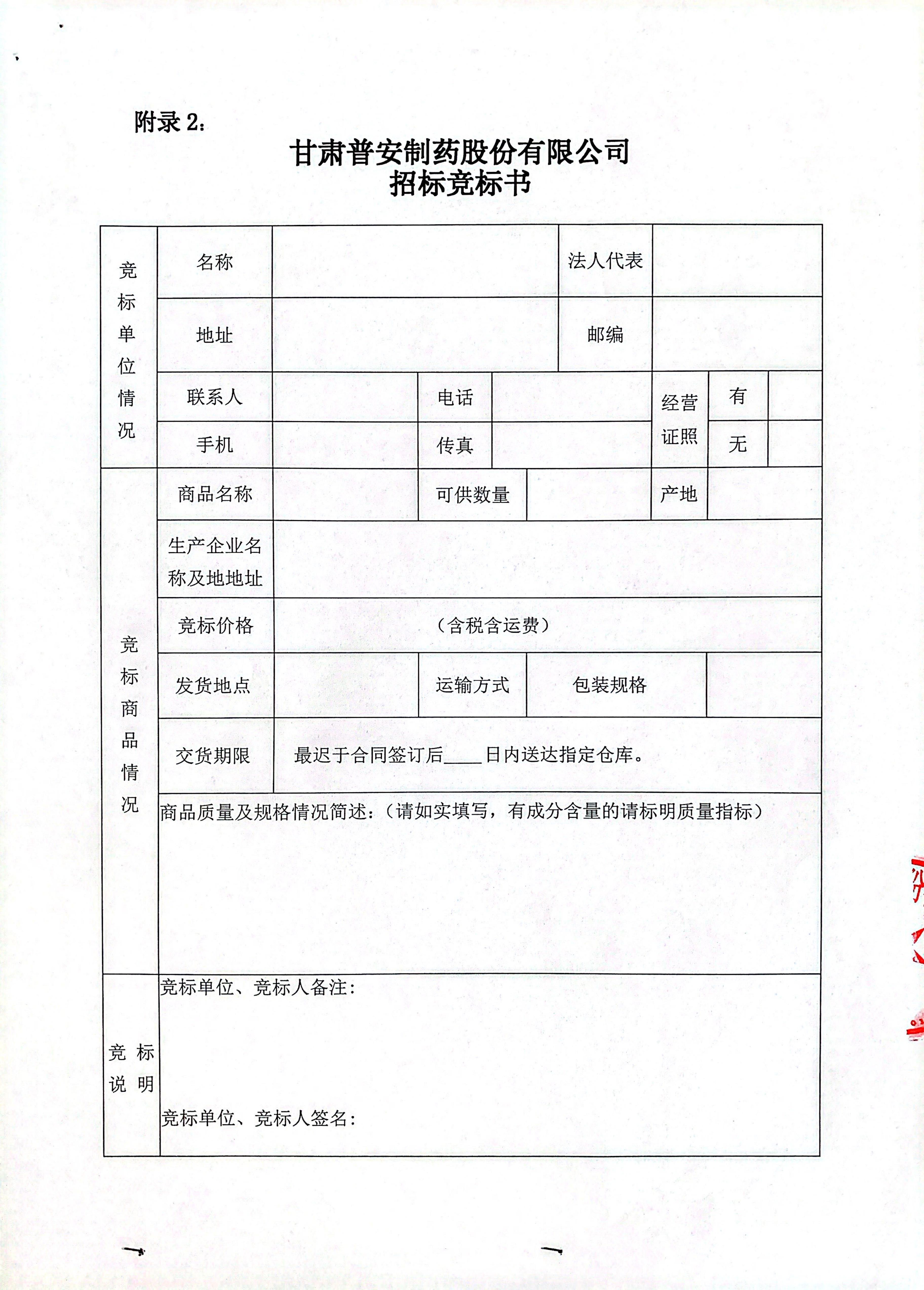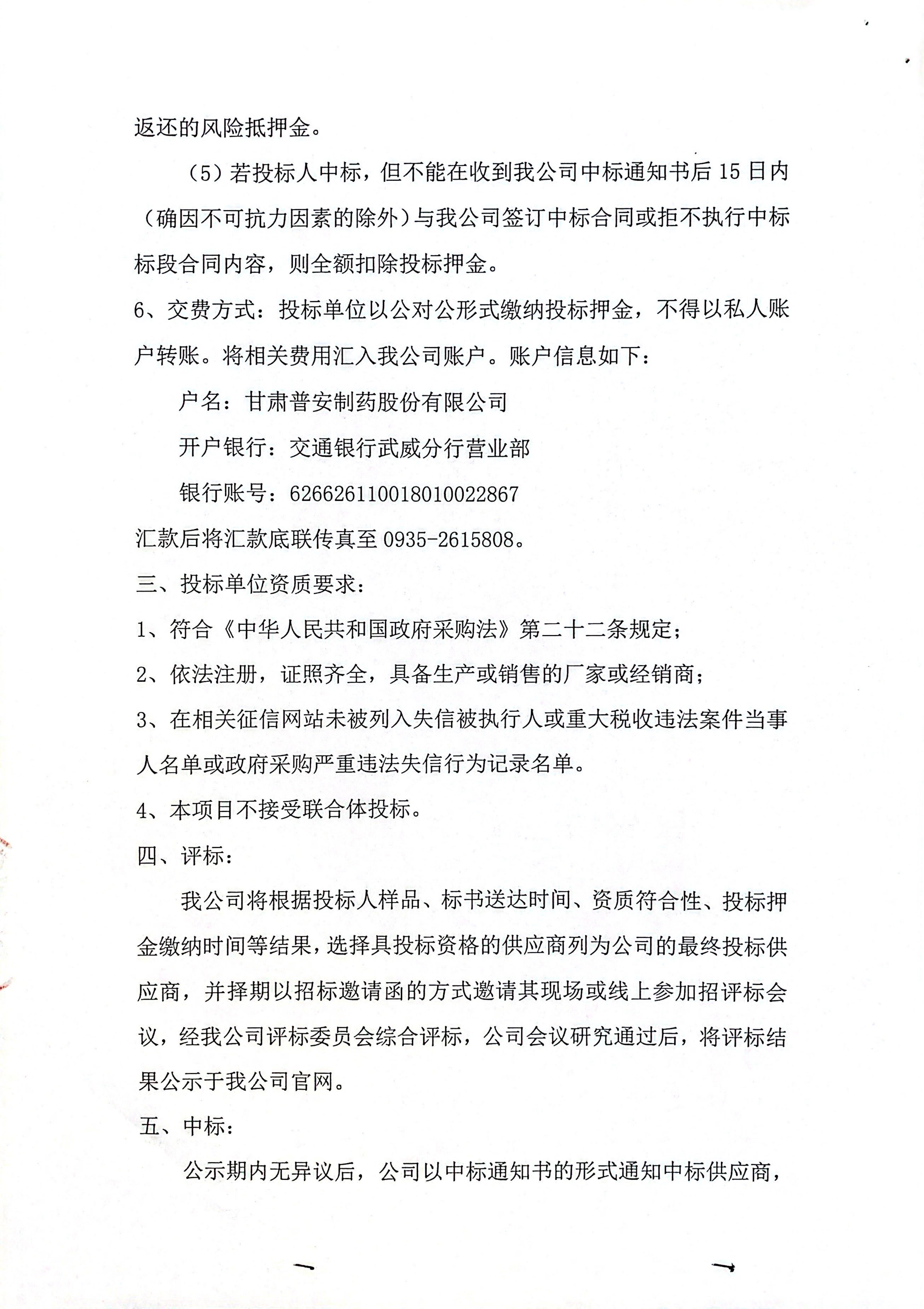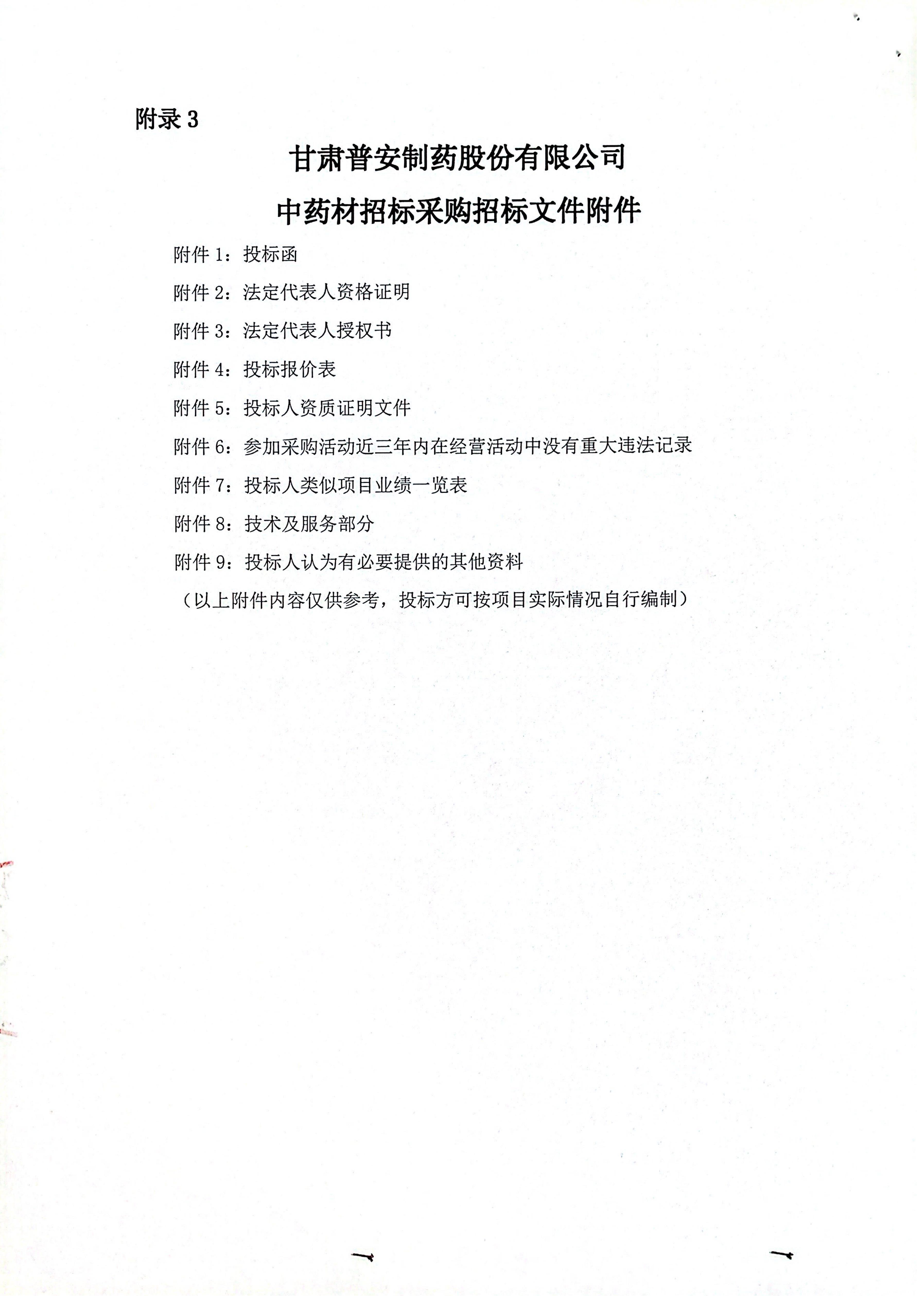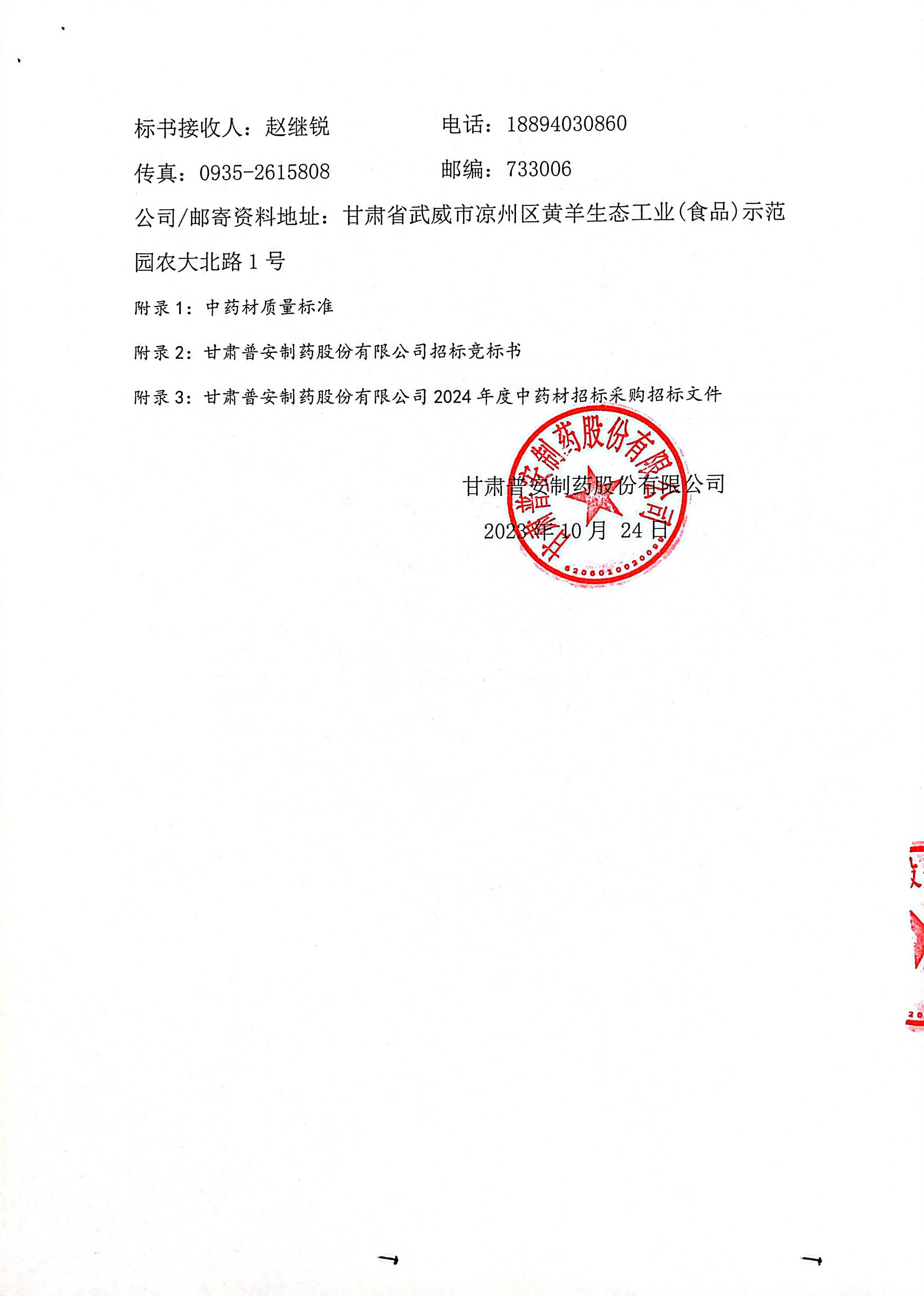 甘肅普安制藥股份有限公司2024年度中藥材招標(biāo)采購公告