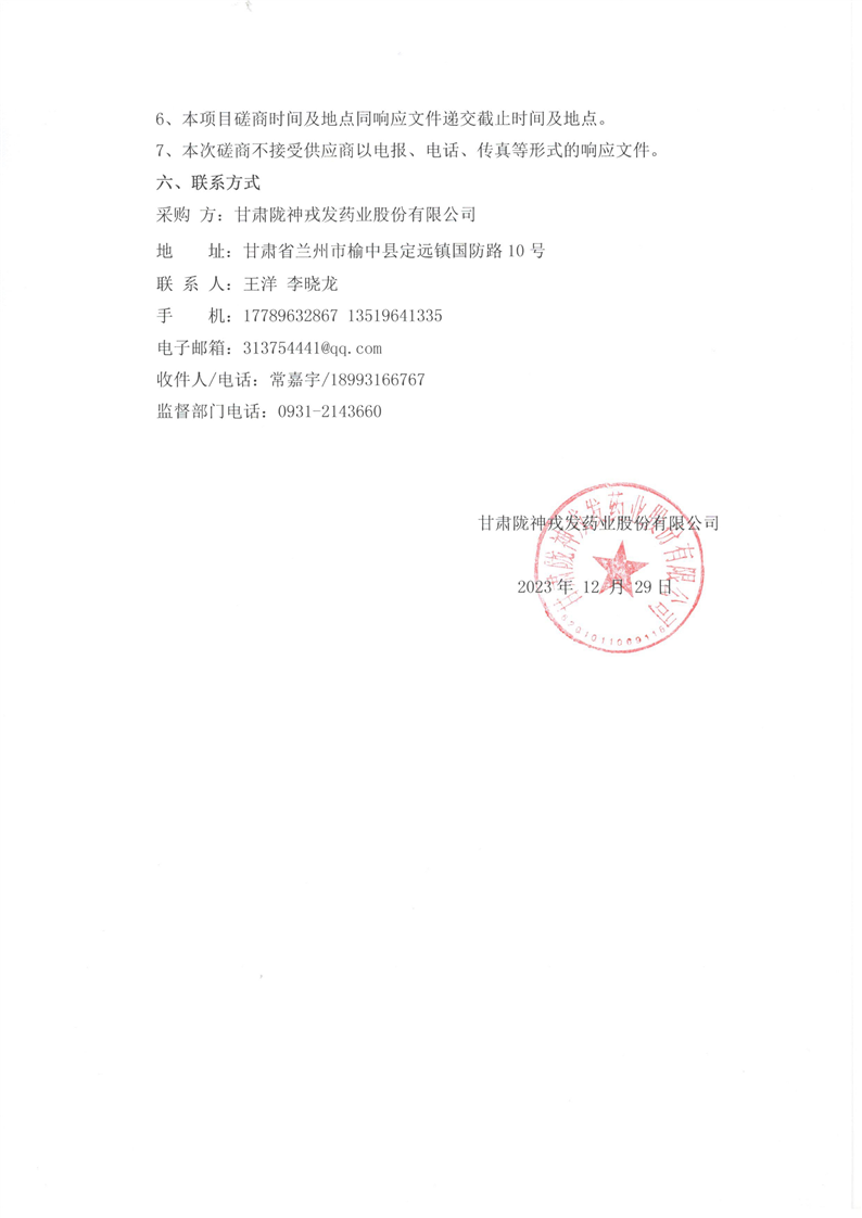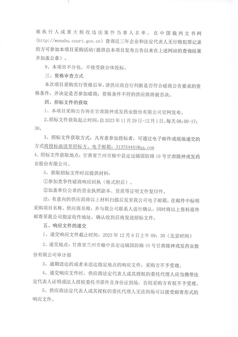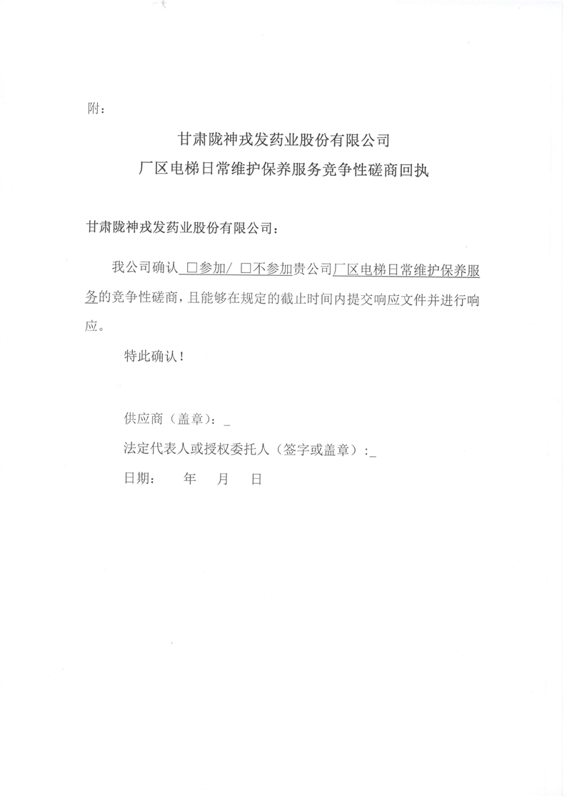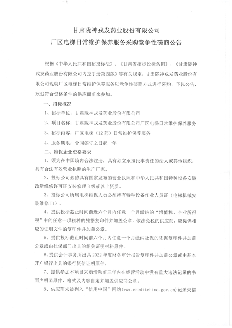 甘肅隴神戎發(fā)藥業(yè)股份有限公司廠區(qū)電梯日常維護(hù)保養(yǎng)服務(wù)采購(gòu)競(jìng)爭(zhēng)性磋商公告