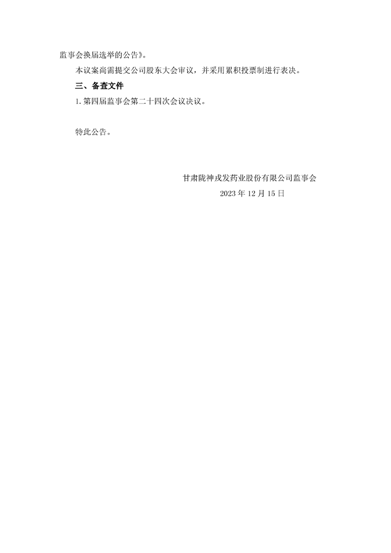 第四屆監(jiān)事會(huì)第二十四次會(huì)議決議公告