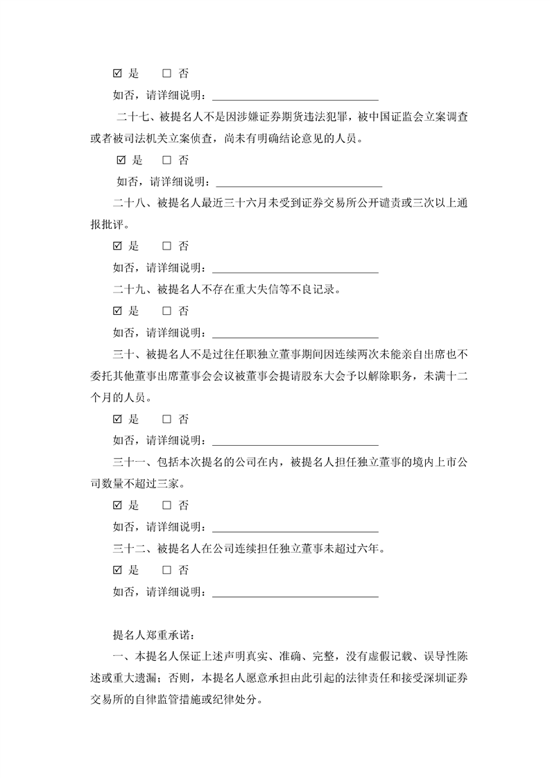 獨(dú)立董事提名人聲明與承諾(李宗義)