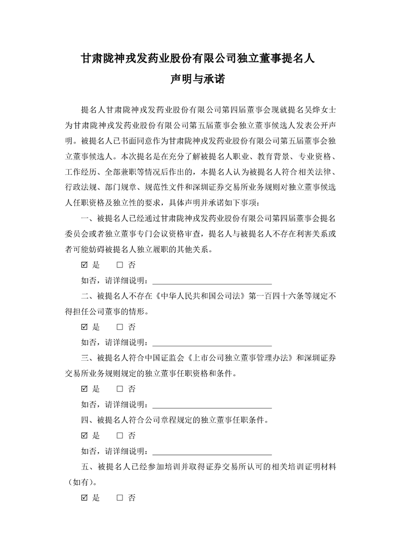 獨(dú)立董事提名人聲明與承諾(吳燁)