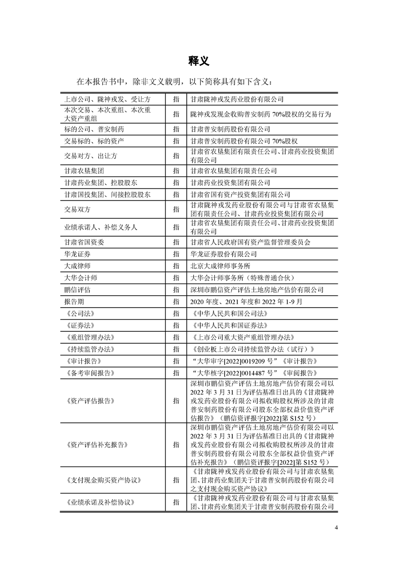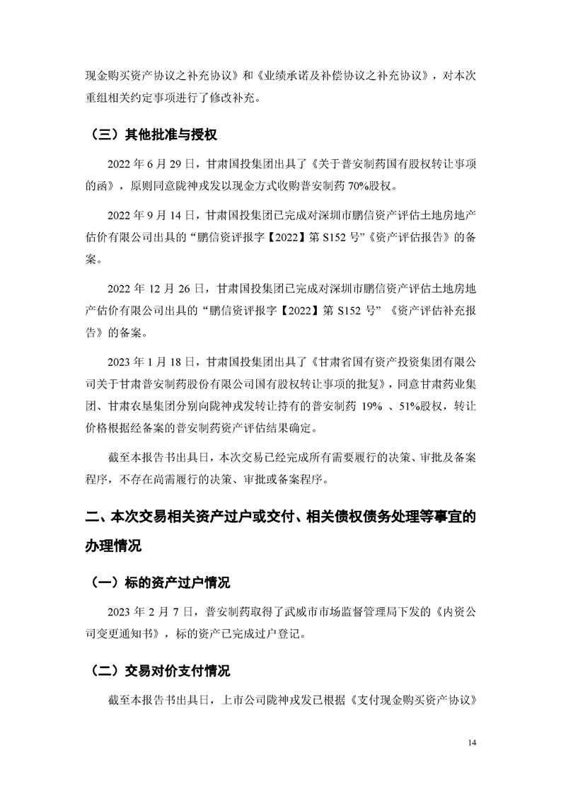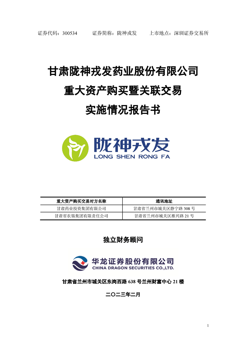甘肅隴神戎發(fā)藥業(yè)股份有限公司重大資產(chǎn)購買暨關(guān)聯(lián)交易實施情況報告書
