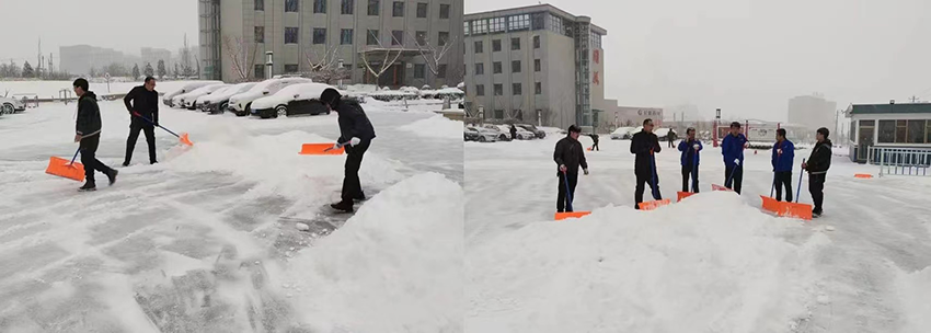 落雪是景,掃雪為情。在清掃過程中,大家手持各類除雪工具,不畏嚴(yán)寒、協(xié)作配合、干勁十足。一個個忙碌的身影在雪地中構(gòu)成了一道風(fēng)景線。經(jīng)過大家一個多小時的通力合作,廠區(qū)內(nèi)主干道全部清理完畢,及時消除了安全隱患。