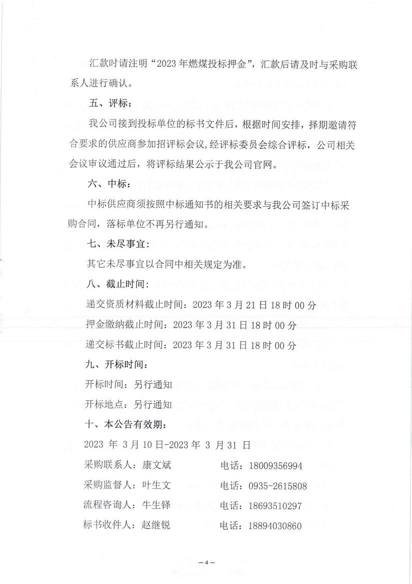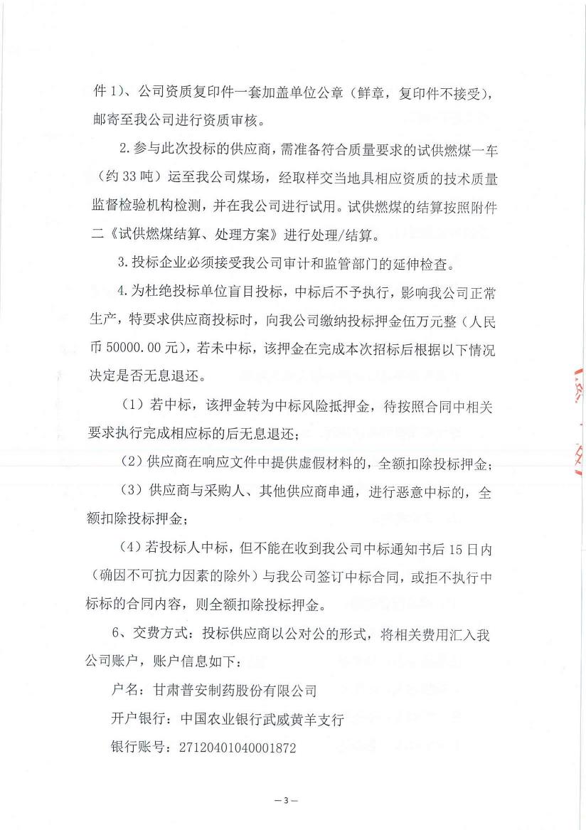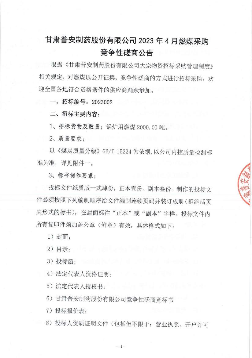 甘肅普安制藥股份有限公司2023年4月燃煤采購競爭性磋商公告