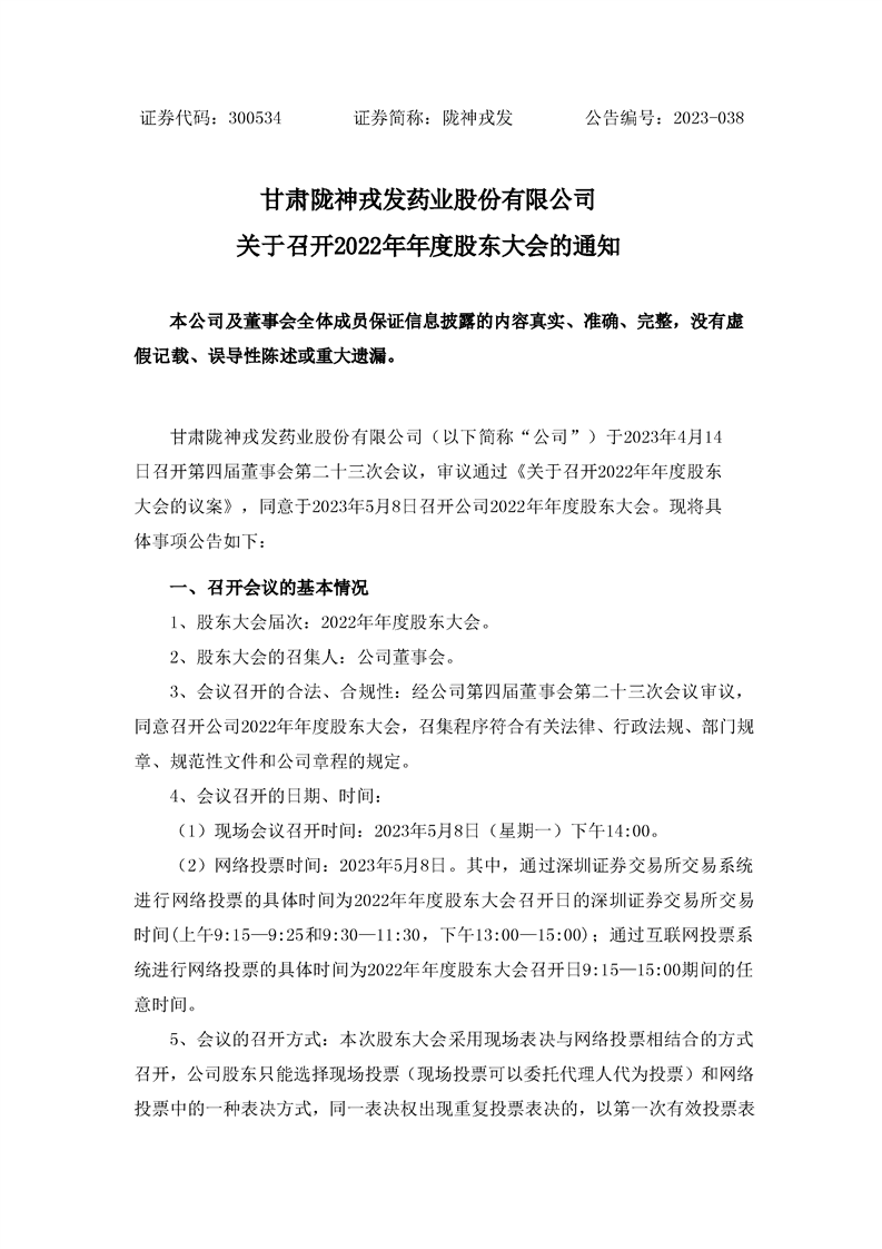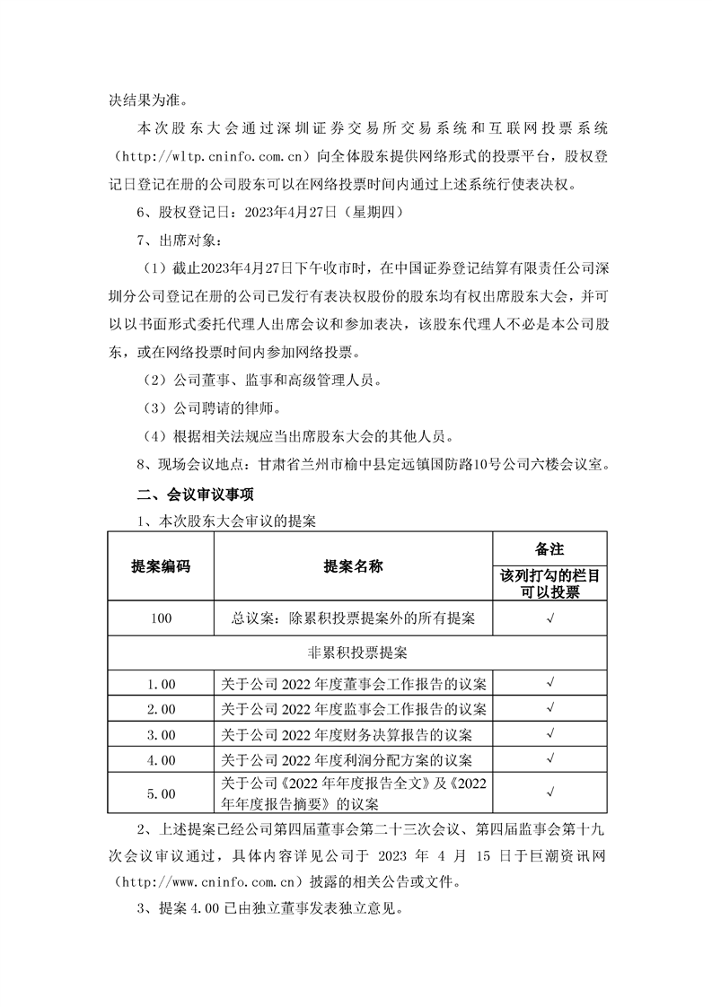關(guān)于召開(kāi)2022年年度股東大會(huì)的通知