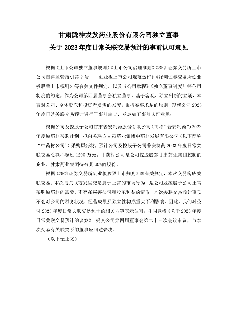 獨(dú)立董事關(guān)于2023年度日常關(guān)聯(lián)交易預(yù)計(jì)的事前認(rèn)可意見(jiàn)