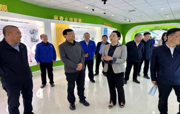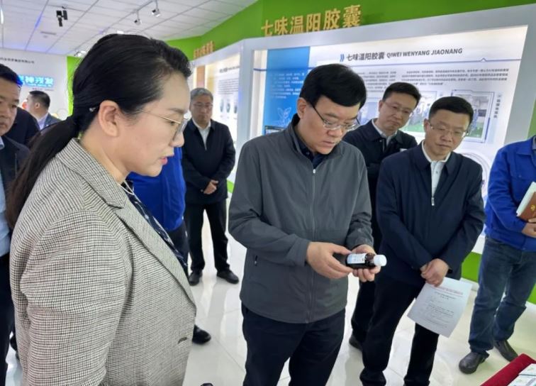 隨后參觀企業(yè)產(chǎn)品展廳,楊俊萍介紹了公司主打產(chǎn)品元胡止痛滴丸及斯娜格藥膜、酸棗仁油滴丸、七味溫陽膠囊等4個全國獨家品種和其他普藥產(chǎn)品,以及公司擴產(chǎn)保供期間生產(chǎn)的宣肺止嗽合劑。陶正茂還詢問了解了廠區(qū)一期項目建設(shè)及二期項目規(guī)劃與推進情況,并在生產(chǎn)線監(jiān)控室觀看了全自動化的智能生產(chǎn)線和藥品生產(chǎn)過程。