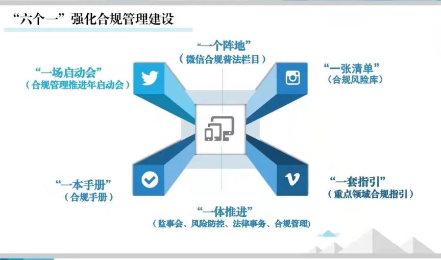 “一個陣地”——堅持用特色化、品牌化發(fā)展思路引領(lǐng)合規(guī)工作,加強合規(guī)文化品牌和陣地建設(shè),充分運用微信公眾平臺創(chuàng)新打造法律合規(guī)學(xué)習(xí)陣地《法治強企》欄目,以“圖片+視頻+文字”的形式自制35期重點合規(guī)學(xué)習(xí)內(nèi)容,內(nèi)容涵蓋企業(yè)投資并購、公司治理、合規(guī)管理等專題。目前,正在組織籌建“合規(guī)信息平臺”,預(yù)計于五月上旬正式上線,作為日常合規(guī)管理、合規(guī)知識學(xué)習(xí)、合規(guī)指引應(yīng)運、合規(guī)風(fēng)險檢索的基礎(chǔ)平臺。