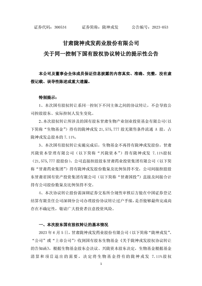 關(guān)于同一控制下國(guó)有股權(quán)協(xié)議轉(zhuǎn)讓的提示性公告
