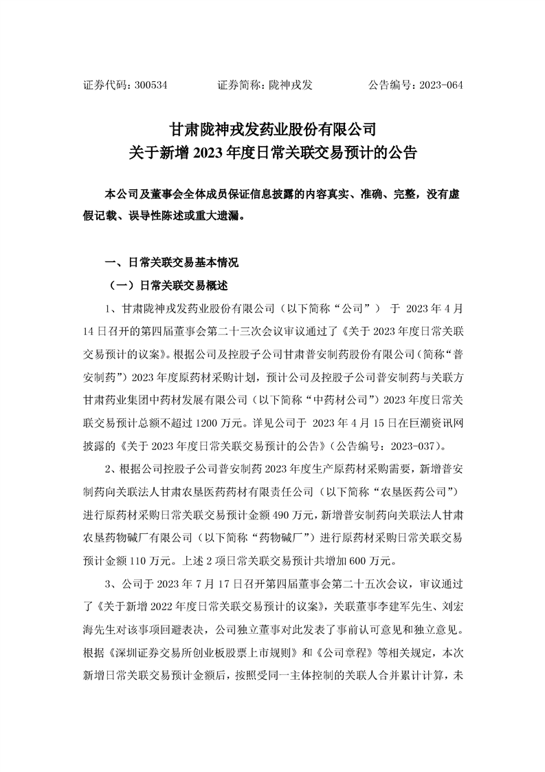 關(guān)于新增2023年度日常關(guān)聯(lián)交易預(yù)計(jì)的公告