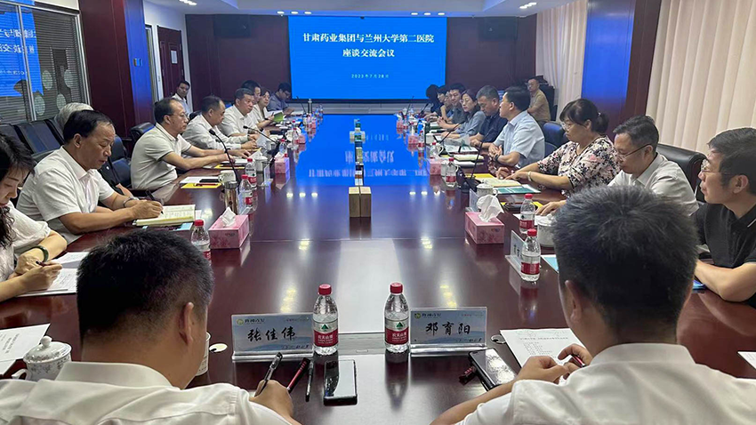 7月28日上午,蘭州大學第二醫(yī)院院長周文策一行蒞臨隴神戎發(fā)參觀并進行座談交流。甘肅藥業(yè)集團公司黨委書記、董事長周榮,黨委副書記、總經(jīng)理竇生銘,黨委委員、副總經(jīng)理張世俊、康海軍、胡寧,財務(wù)總監(jiān)王麗華等企業(yè)相關(guān)人員參加調(diào)研并座談。